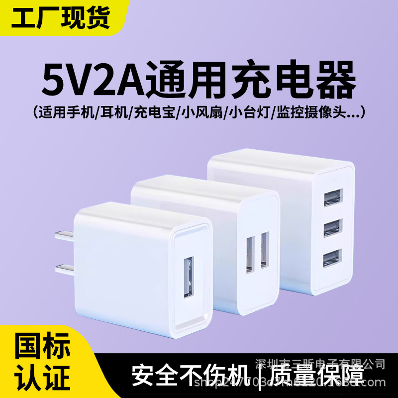 Оптовый набор зарядных устройств: головка USB 5V2A с сертификатом 3C (национальный стандарт) для светодиодных лент, настольных ламп; зарядное устройство для мобильных телефонов 1A (китайский стандарт)