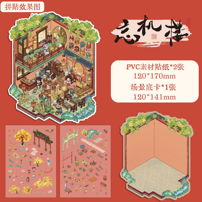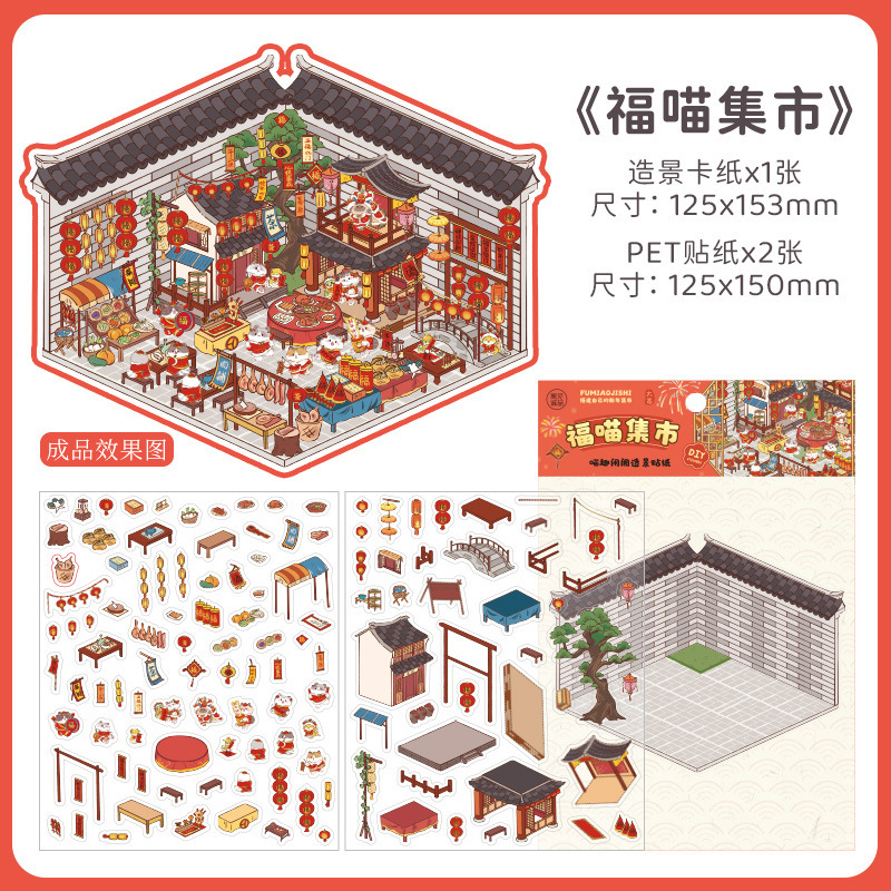 Главная страница > Стерео ландшафтная наклейка имитирует открытие магазина хижины 3d сцена наклейки Мяу Fun Ge Guofeng ручная книга креативная наклейка