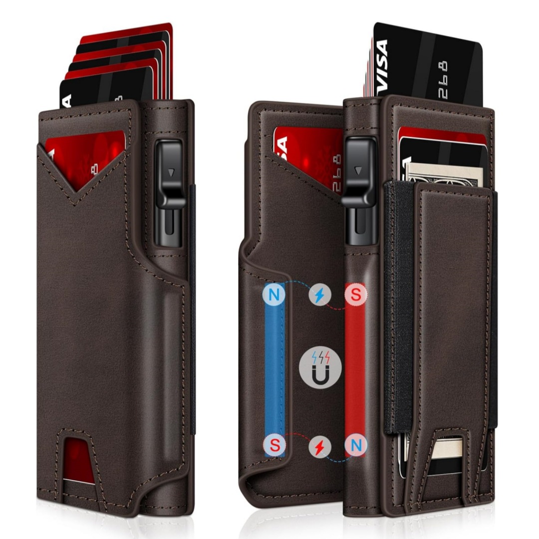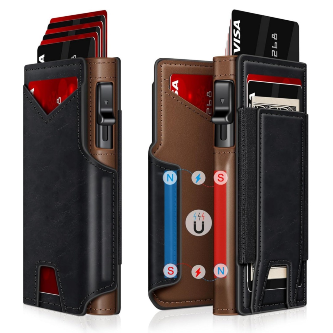 Главная страница > Европейский и американский кошелек большой емкости с несколькими слотами для карт RFID, мужской кошелек контрастного цвета, мужской высококачественный автоматический всплывающий мужской держатель для карт из искусственной кожи
