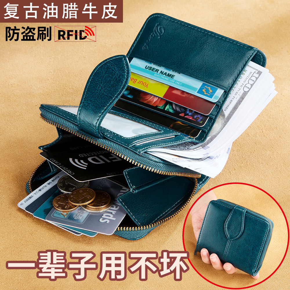 Женский кошелек из натуральной кожи, короткий экспорт, противоугонная карта, функция переплетения водительских прав, ретро-масляный воск, воловья кожа, сумка для монет на молнии