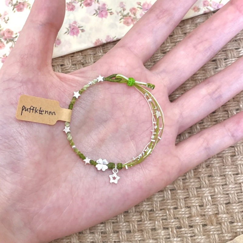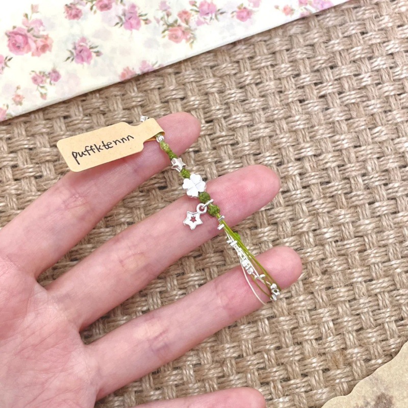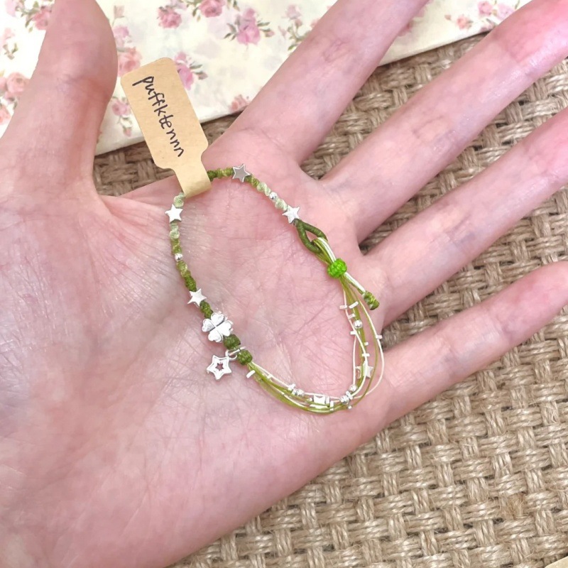 Главная страница > Счастливый четырехлистный клевер ~ зеленый браслет из веревки ручной работы с четырехлистным клевером, звездой, лесом, браслет в пасторальном стиле, универсальный летом