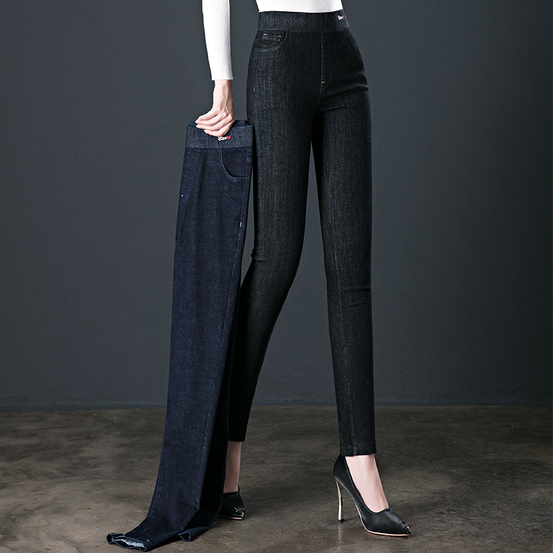 Главная страница > Джинсы с высокой талией для женщин, весна-осень 2025, облегающие, эластичные, стройнящие, приталенные брюки-карандаш, большие размеры, с эластичным поясом, для полных женщин