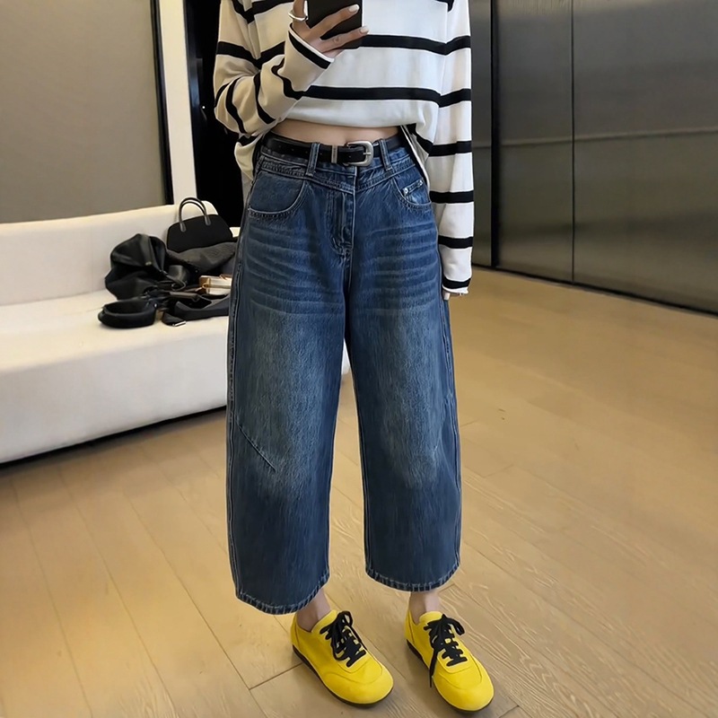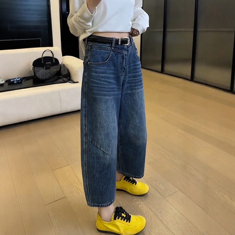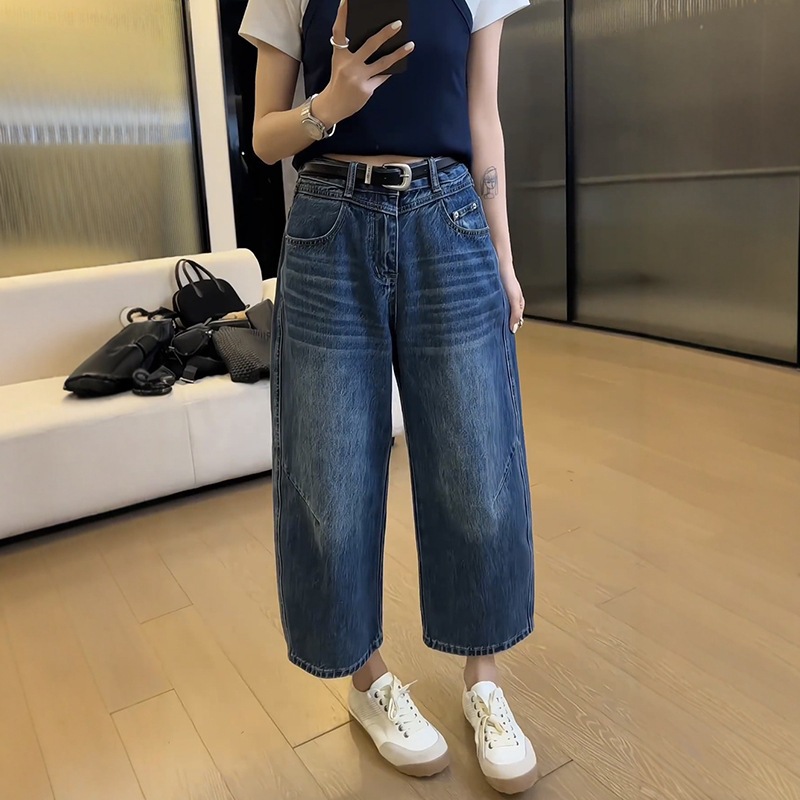 Главная страница > Женские джинсы больших размеров, весна/лето 2025, новые свободные укороченные широкие брюки с высокой талией для тела грушевидной формы
