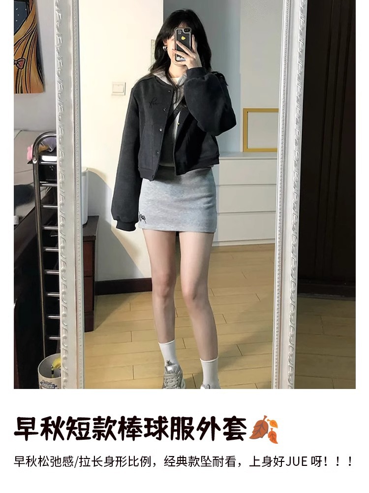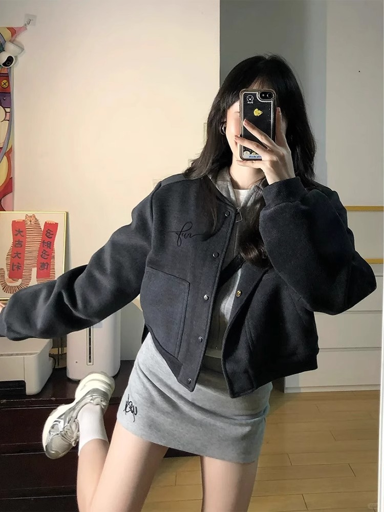 Главная страница > Осенняя шерстяная короткая бейсбольная куртка, куртка на правое плечо, женский костюм ранней осени в корейском стиле, маленькая куртка, утолщенная