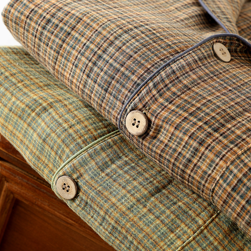 Главная страница > Munai Garden Мужская новая хлопковая двухслойная хлопчатобумажная пряжа цветная повседневная сетка свободная пижама большого размера отворот весной и осенью