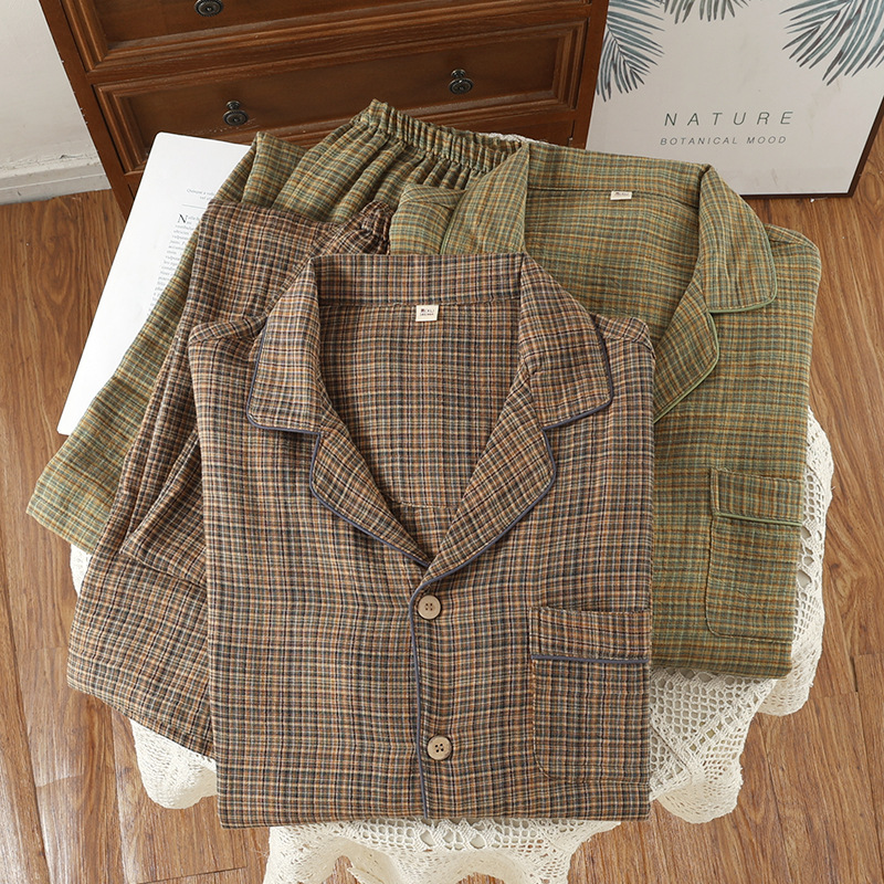 Munai Garden Мужская новая хлопковая двухслойная хлопчатобумажная пряжа цветная повседневная сетка свободная пижама большого размера отворот весной и осенью