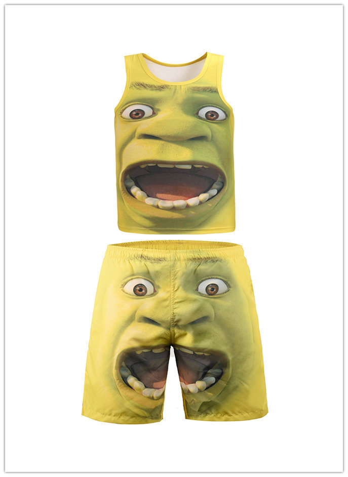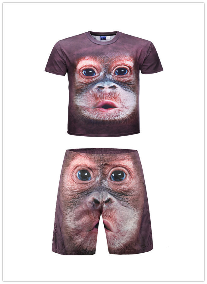 Главная страница > 2025 AliExpress Amazon 3D цифровой принт животное обезьяна лицо мужская футболка фитнес эластичный комплект с короткими рукавами