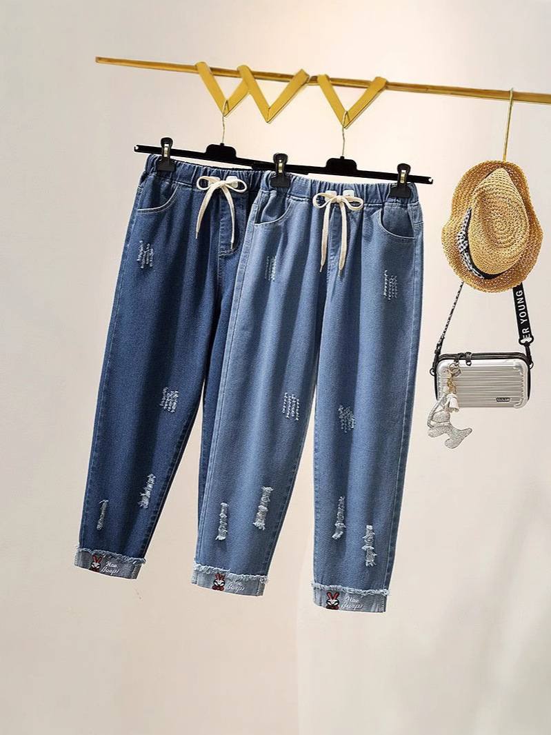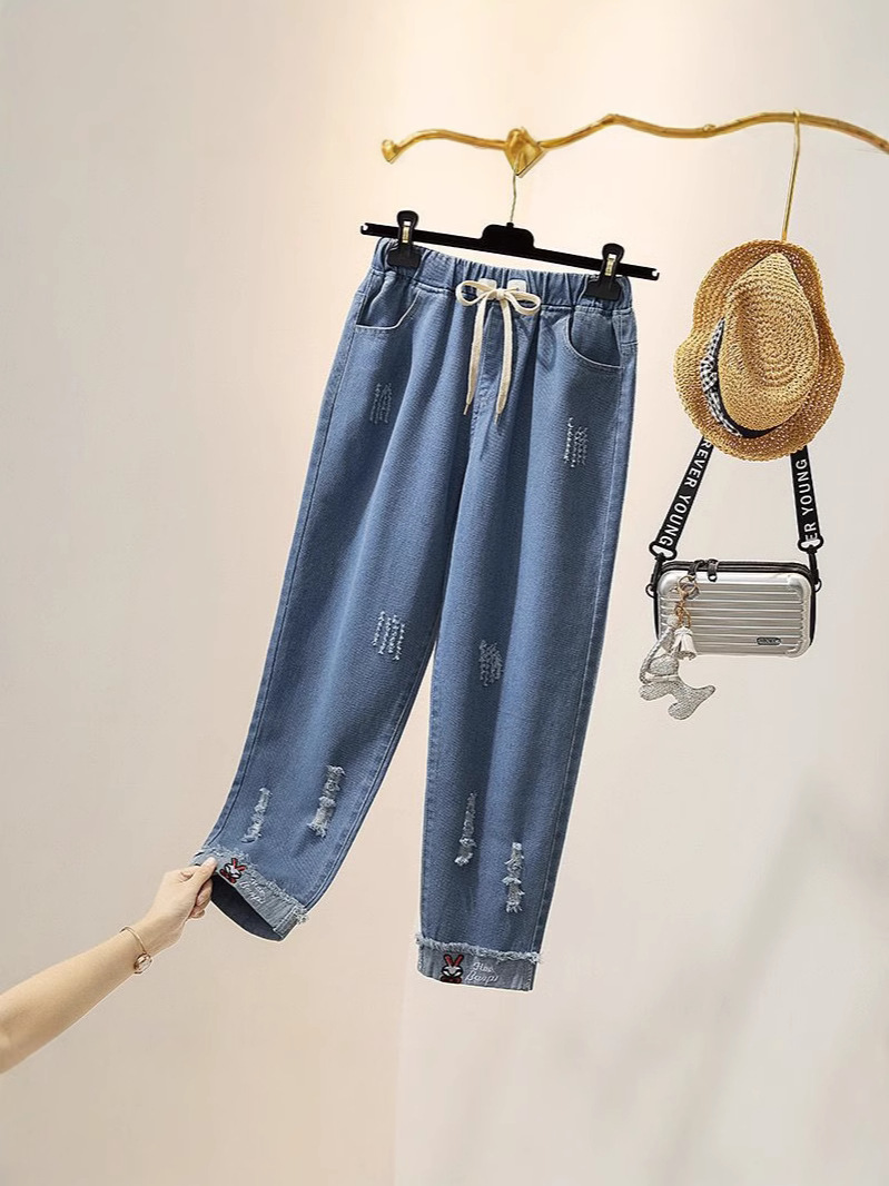 Главная страница > 2025 весна и осень новые корейские свободные эластические джинсы женская вышивка с высокой талией Академия ветра Harlen прямые брюки