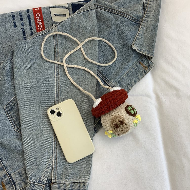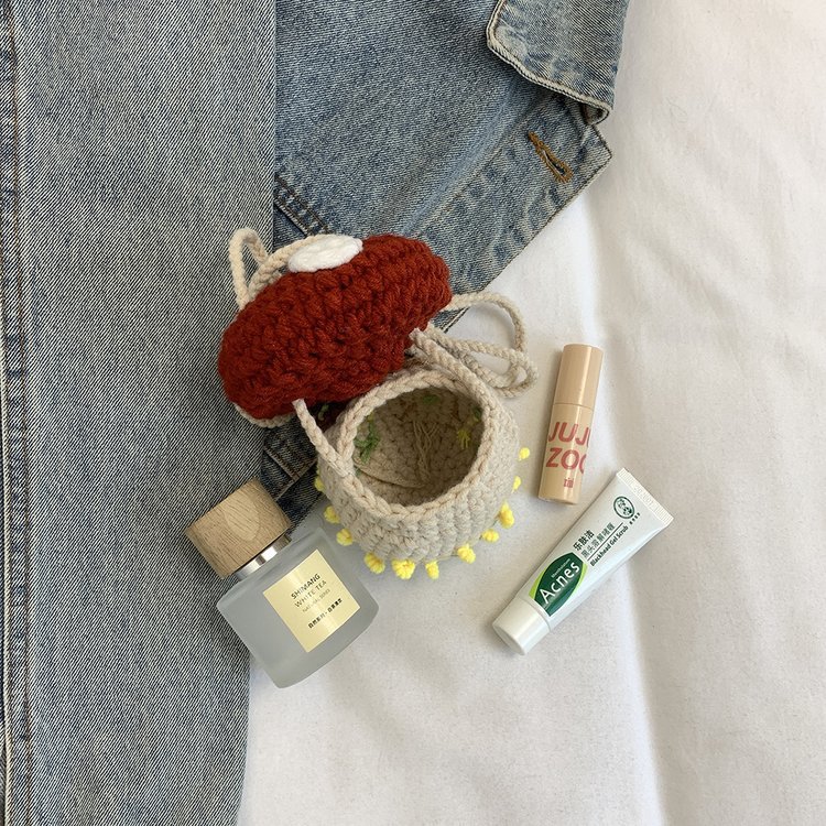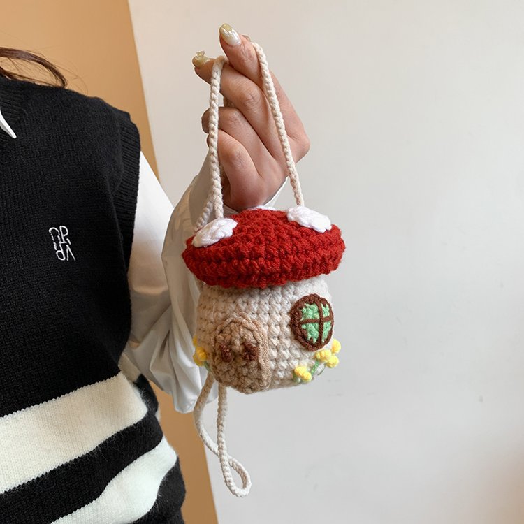 Новый стиль ручной работы тканая сумка женская сумка через плечо готовая грибная вязаная сумка помада красный кошелек детская сумка зима