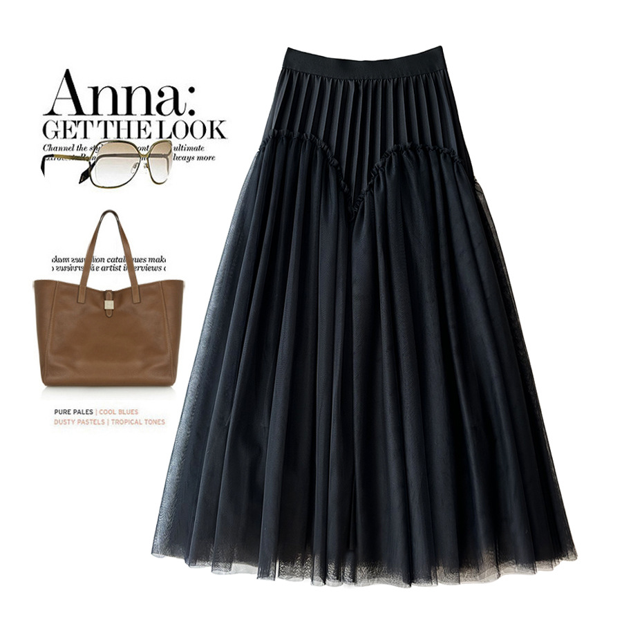 Главная страница > Атмосферная длинная юбка, плиссированная приталенная юбка-пуф, сетчатая юбка французского дизайна, Женская 2023, осенне-зимняя юбка в западном стиле