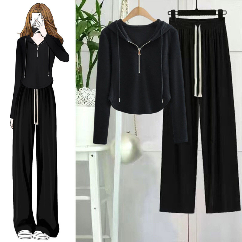 Главная страница > Маленький костюм для женских одиночных игр/ранней осенью новая корейская версия дизайна с капюшоном свитер с высокой талией и широкими брюками из двух частей