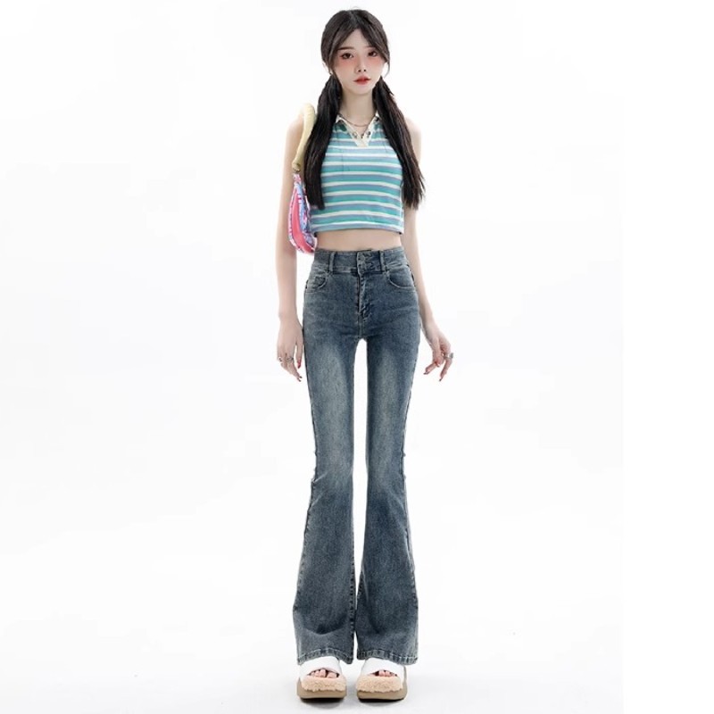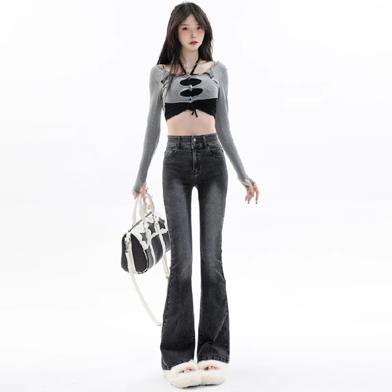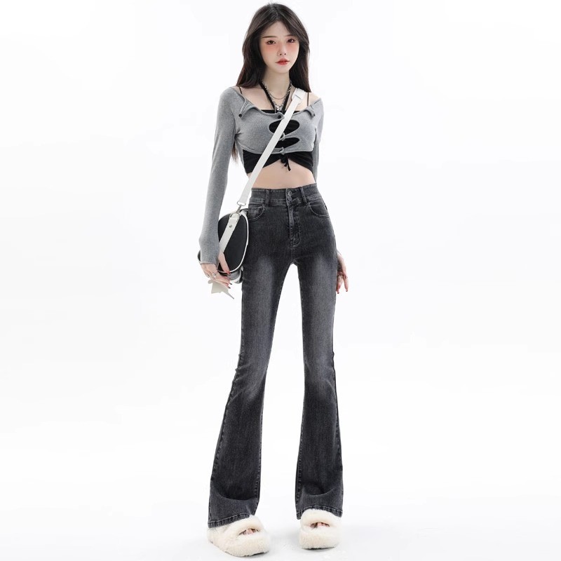 Главная страница > Американский ретро дымно-серый микролаг джинсы женские модные дикие новые тонкие тонкие брюки с высокой талией