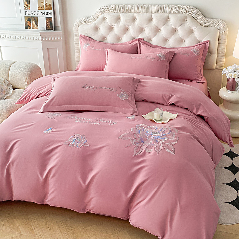 Новая вышивка четыре комплекта шлифовальные хлопчатобумажные простыни однотонные легкие роскошные простые подарки 4 комплекта оптом
