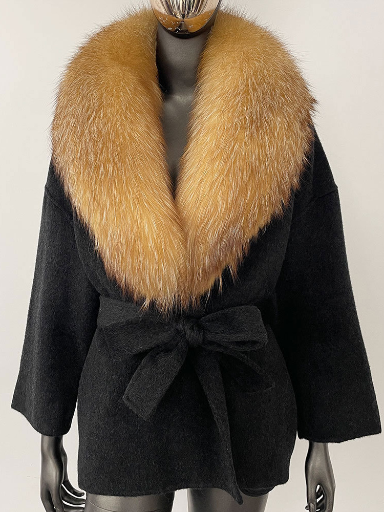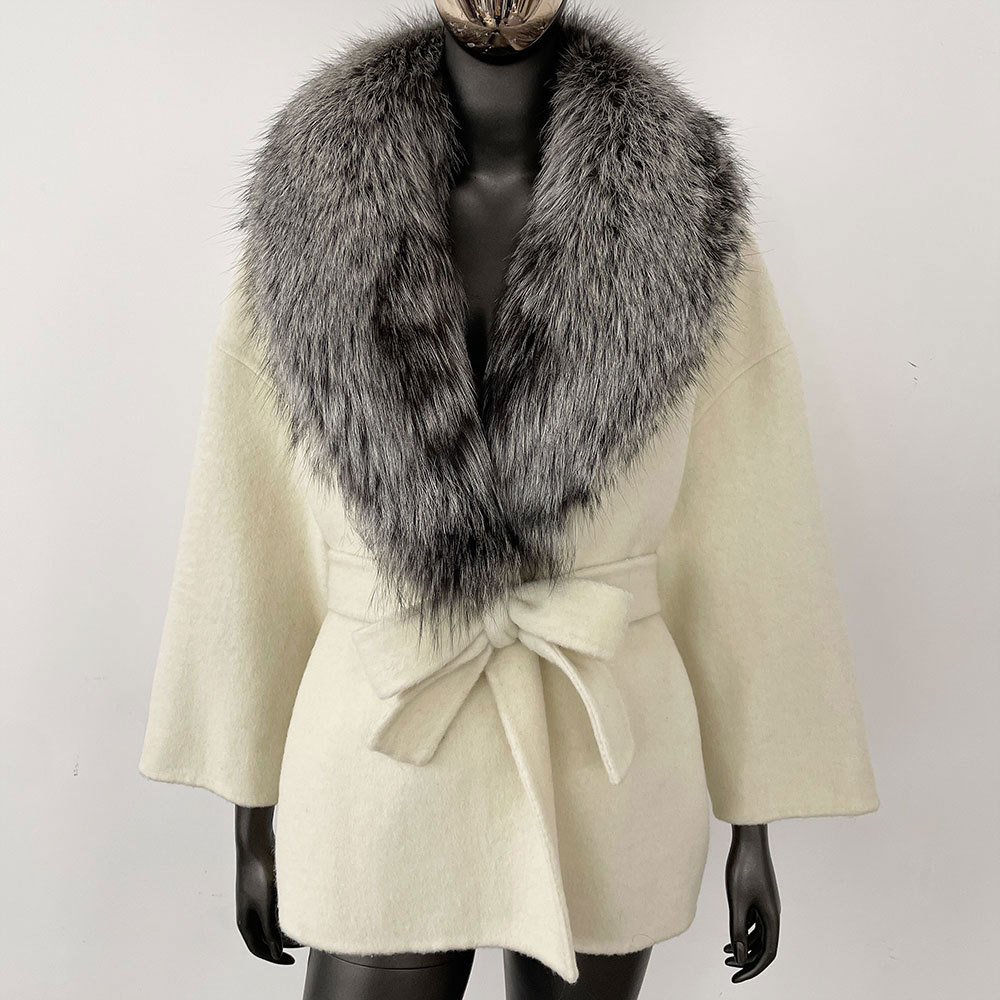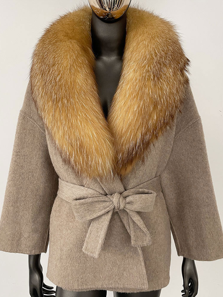 Главная страница > Теплая женская осенне-зимняя новинка в европейском и американском стиле, короткое двустороннее шерстяное пальто с воротником из лисьего меха, элегантное и стильное.