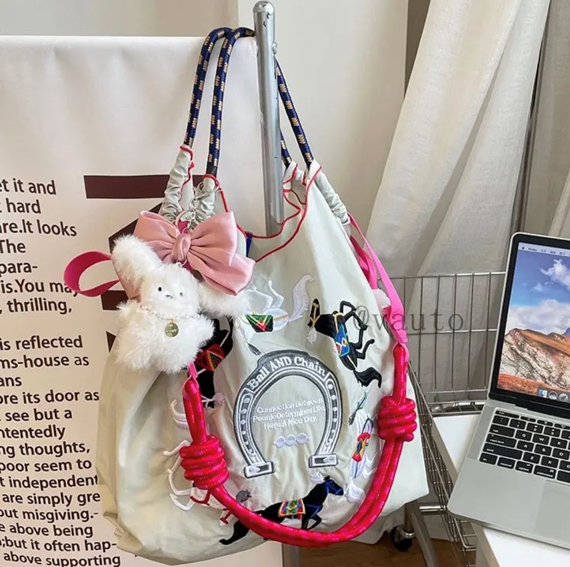 Главная страница > Летняя новая японская вышивка ballchain зеленая сумка ballchain Сумка Для Покупок Сумка Холщовая Сумка