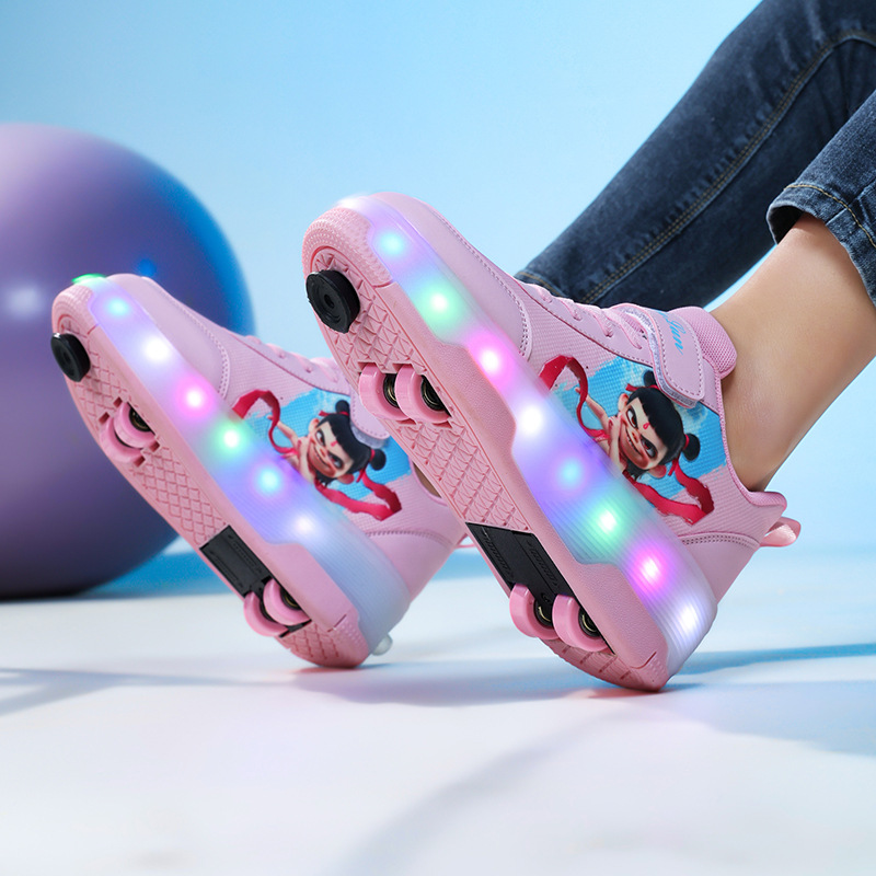 Фабрика прямых продаж детей светящиеся кроссовки четыре колеса невидимые студенческие коньки шкивы с колесами для девочек