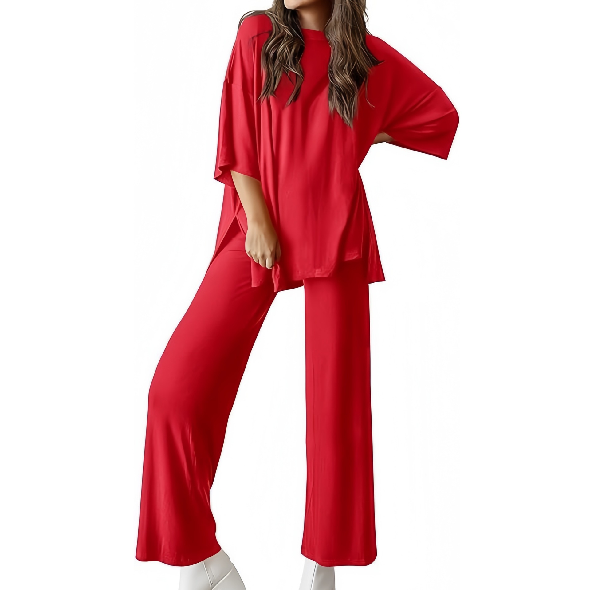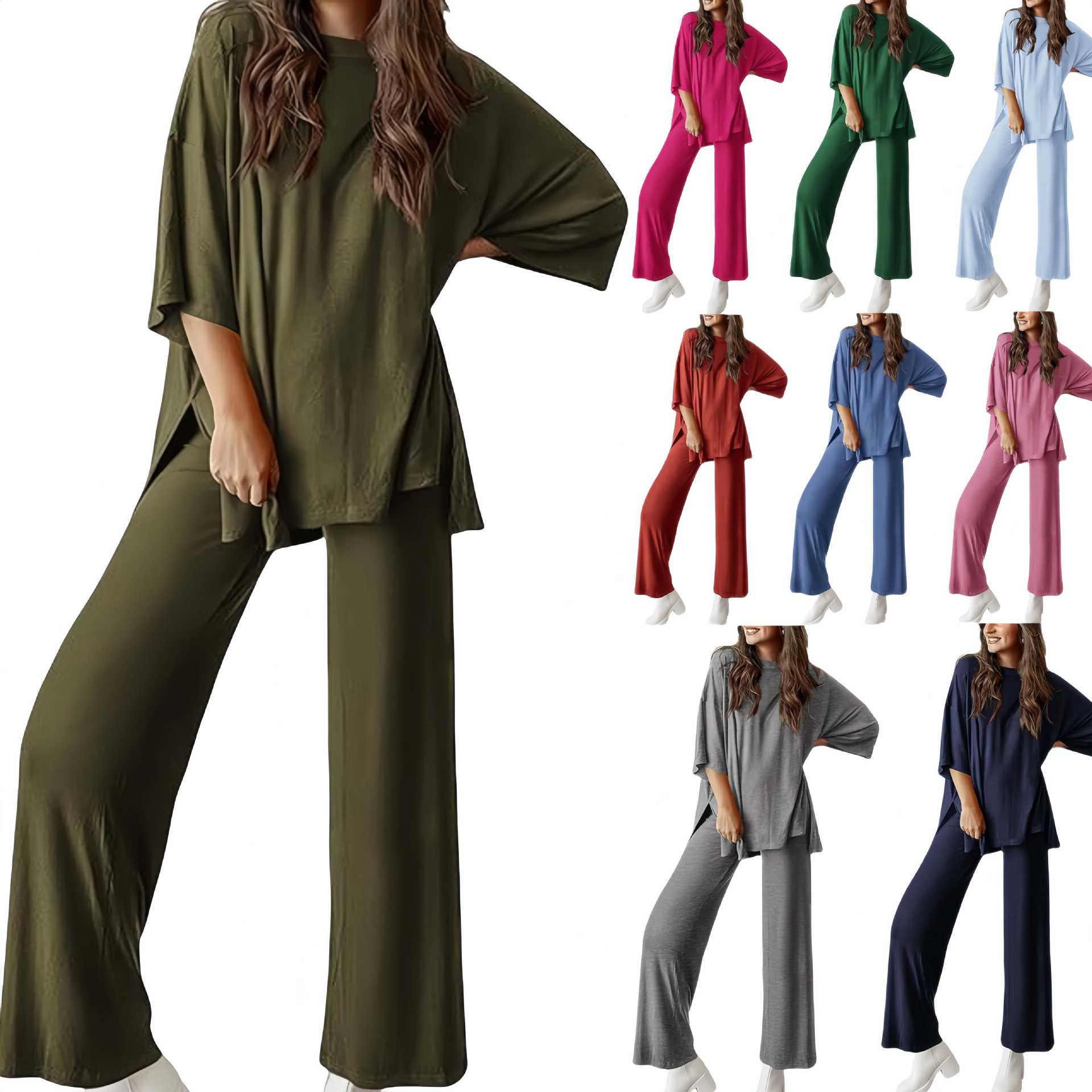 Главная страница > Кросс-граничная внешняя торговля Amazon 2025 осенний женский однотонный удобный свободный топ с короткими рукавами и длинные брюки с боковыми карманами