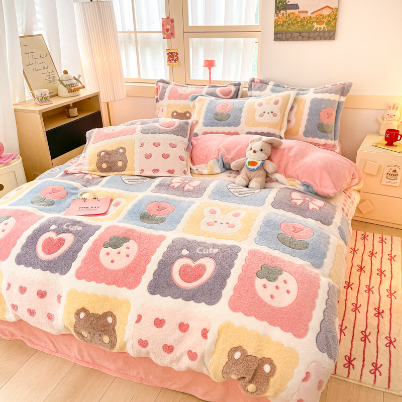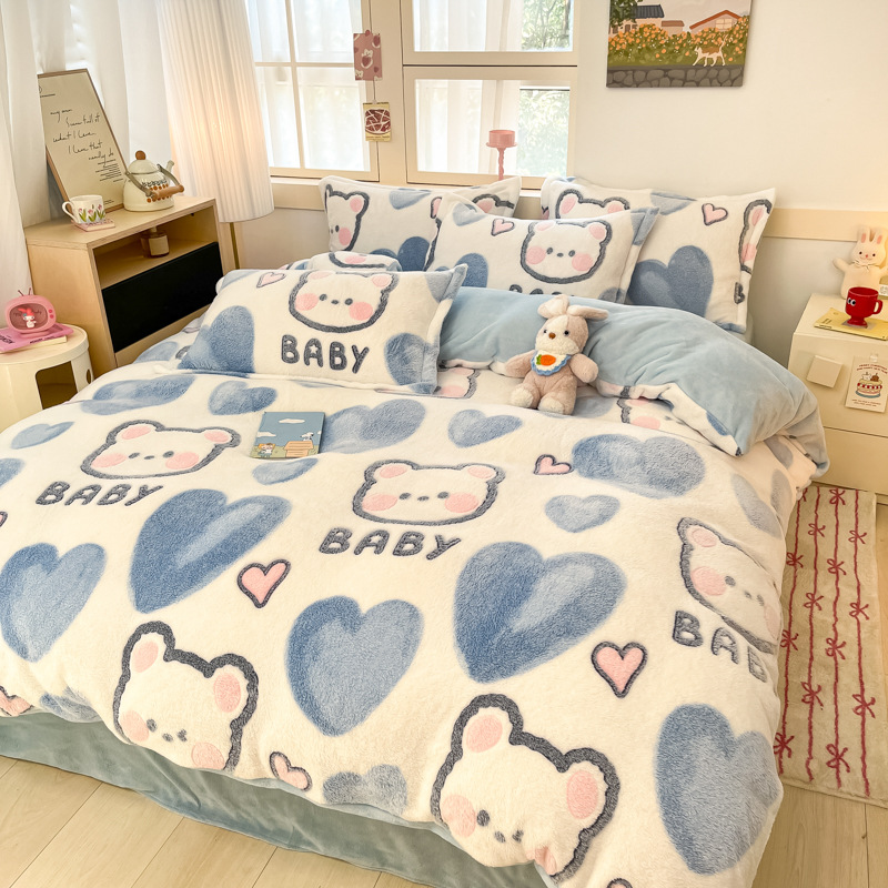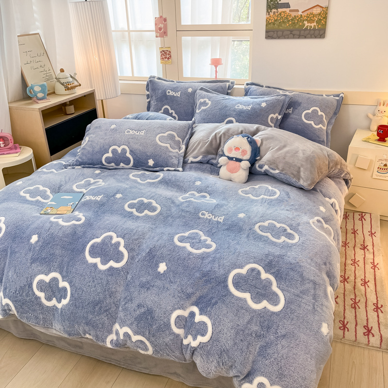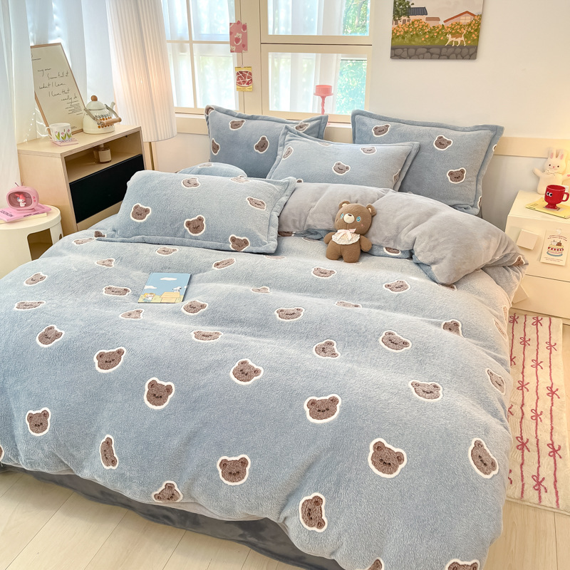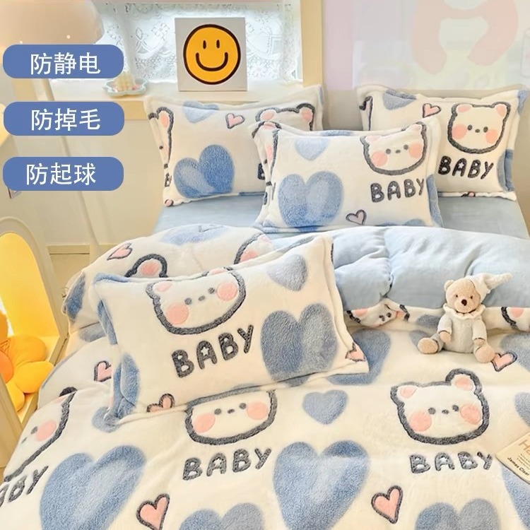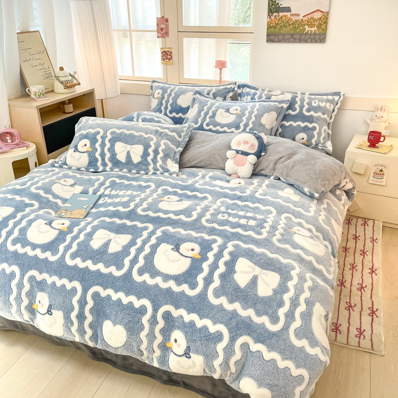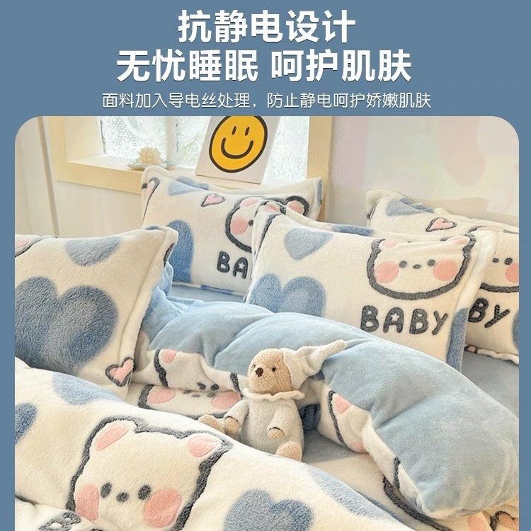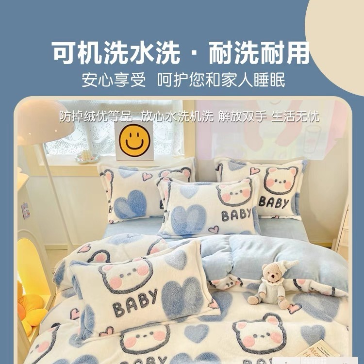Главная страница > Комплект постельного белья из кораллового флиса класса А для осени и зимы, четыре предмета, фланелевый плюшевый комплект для всех сезонов, пододеяльник, комплект из трех предметов для кровати