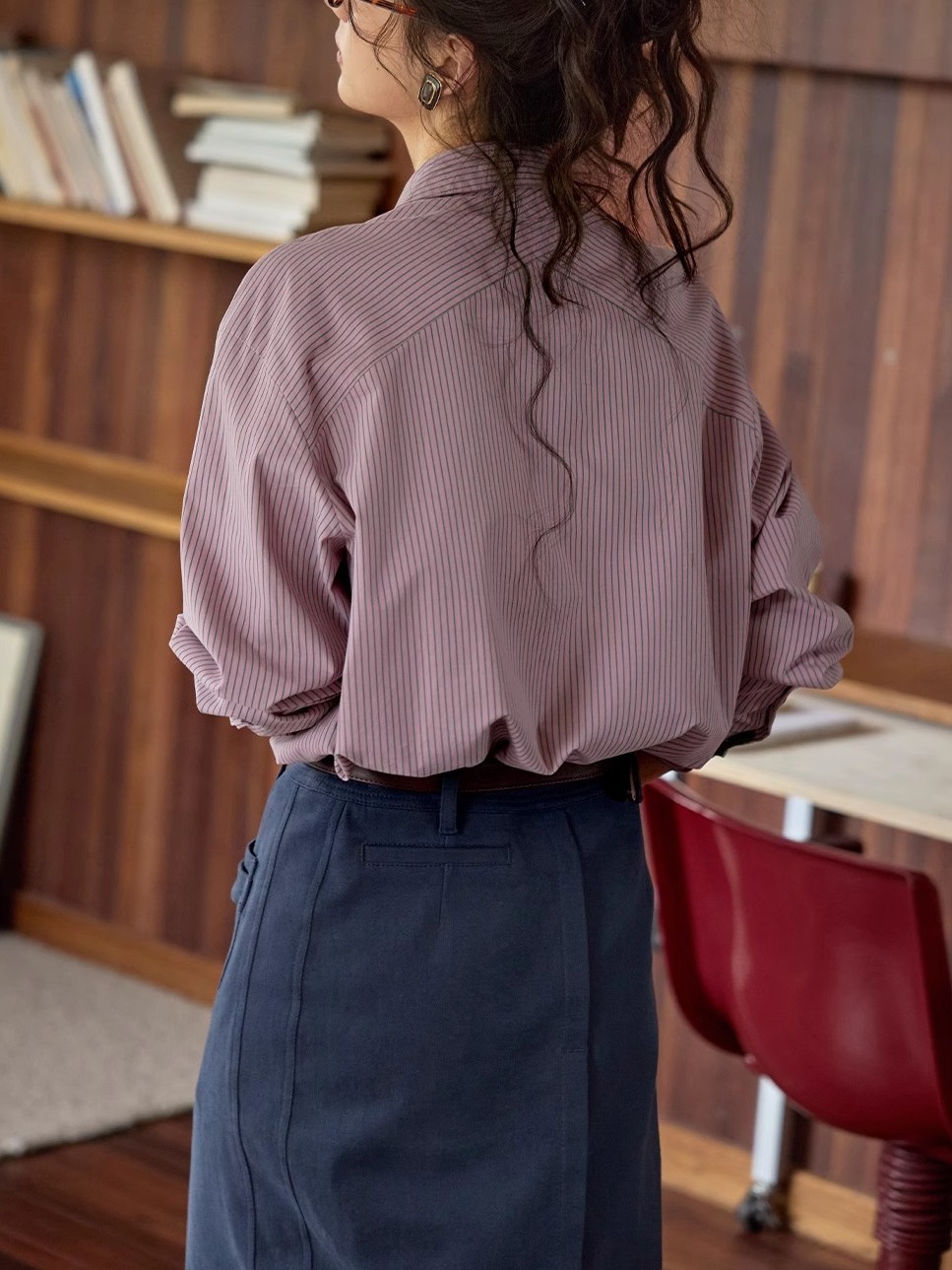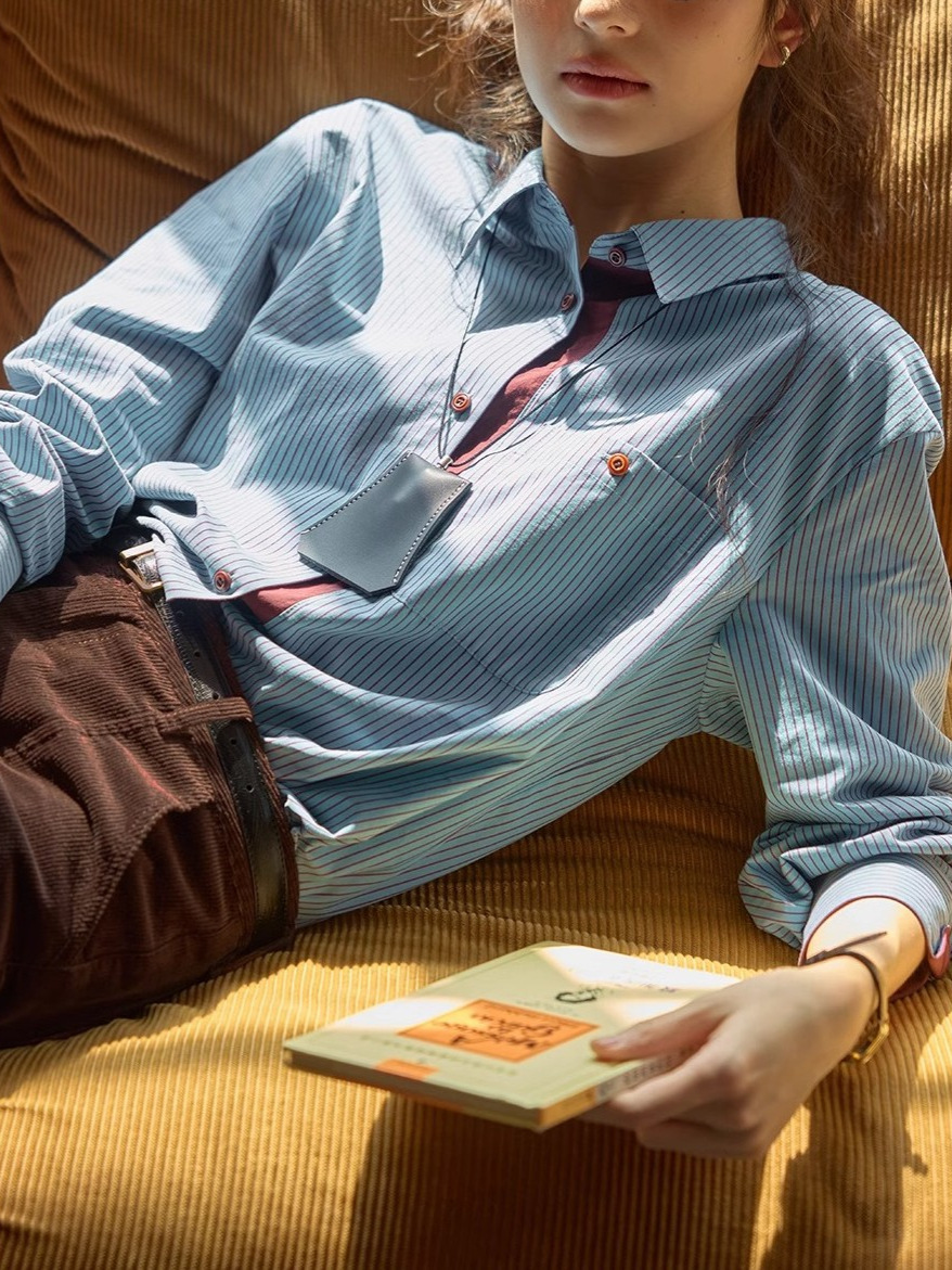 Главная страница > Женская рубашка Soljghter в стиле французского ретро с цветными блоками и вертикальными полосками, новинка весны и осени 2025 года, топ с начесом и длинными рукавами