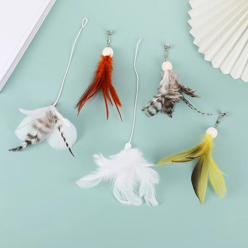 Игрушка-дразнилка для кошек с заменяемой головкой из перьев для взрослых кошек и котят, интерактивная игрушка для самостоятельных игр с кошачьей мятой.