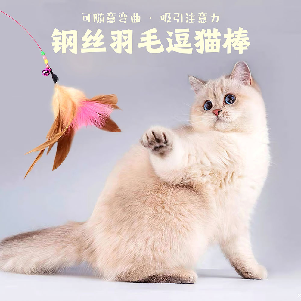 Кошачья игрушка проволока перья дразня кошачья палка кошачья длинная модель с колокольчиком