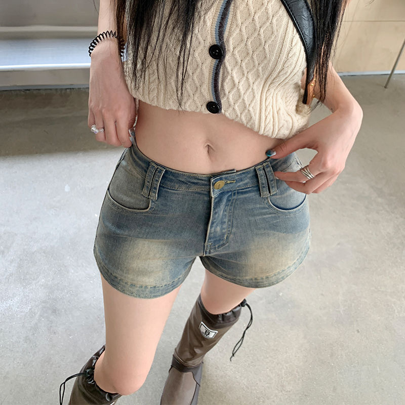 Ретро эластичные американские джинсовые шорты женские 2024 новые сексуальные горячие девушки