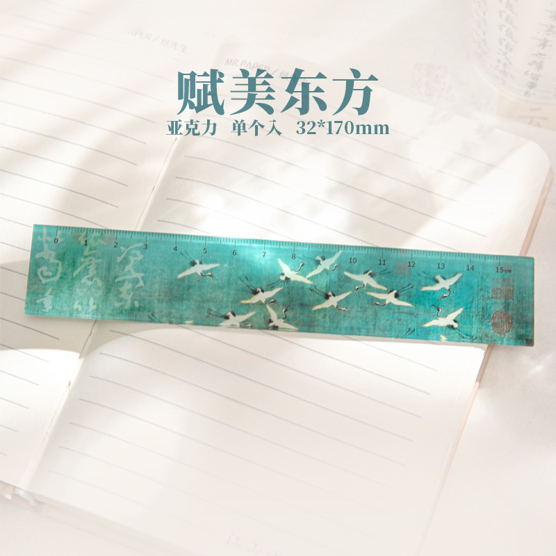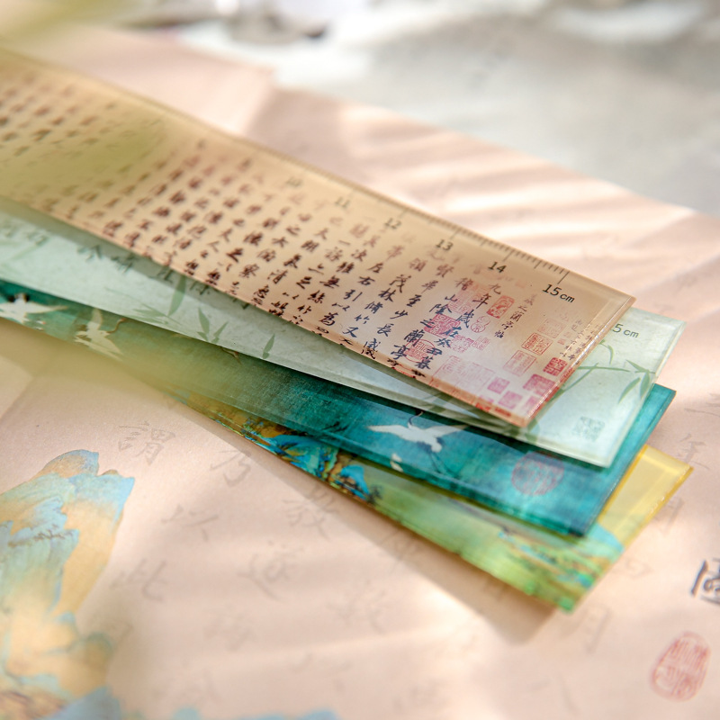 Акриловая линейка в древнекитайском стиле с изображением знаменитых картин, канцелярские принадлежности, искусство, рисование, линейка для ведения дневника, 15 см