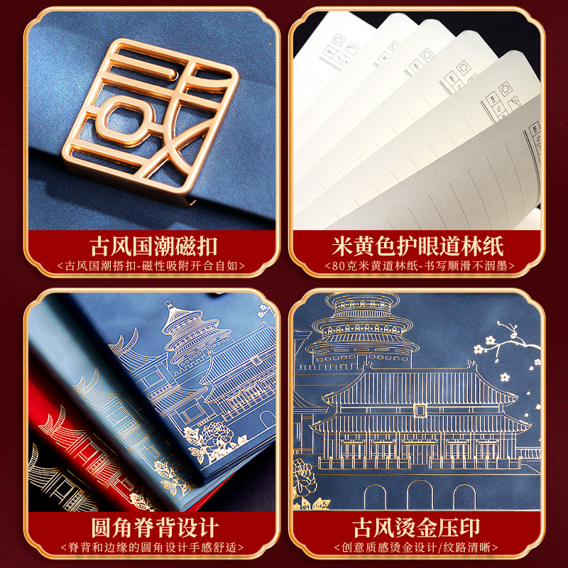 Главная страница > Модный блокнот Keguo в деловом стиле, с винтажным золотым тиснением в виде узора "Запретный город", блокнот с корпоративным логотипом, возможность нанесения индивидуальной печати.