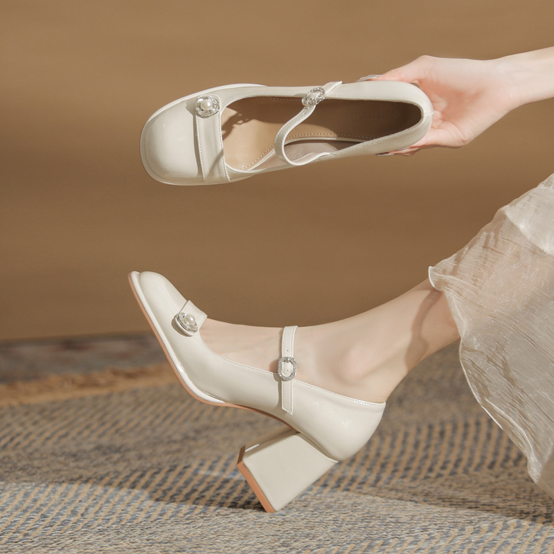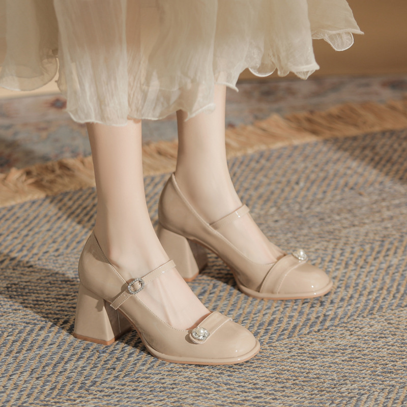 Главная страница > Jin YMY7013 толстые каблуки Mary Jin Женские туфли 2024 новые весенние и осенние дикие туфли на высоком каблуке