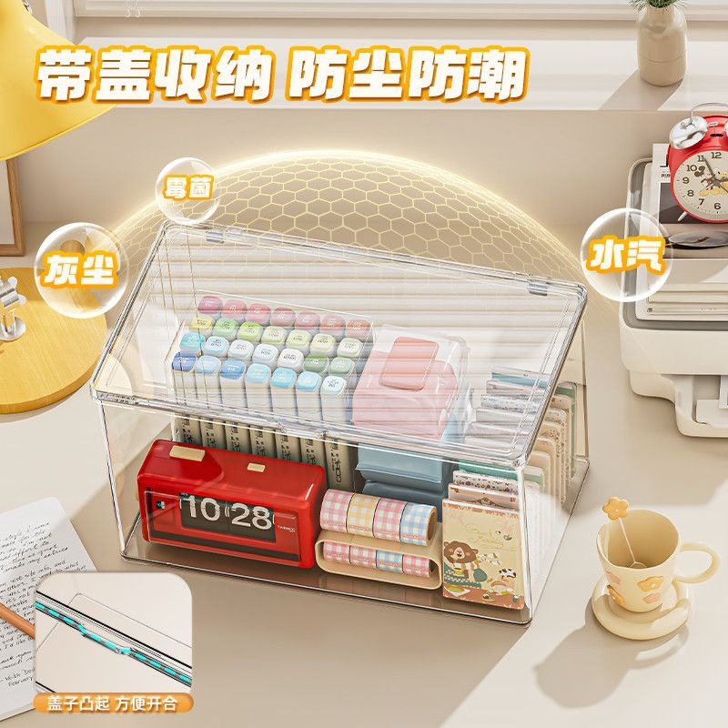 Настольный ящик для хранения с откидной крышкой, прозрачный акриловый пылезащитный ящик для хранения, корзина для хранения в спальне, общежитии, офисе с крышкой
