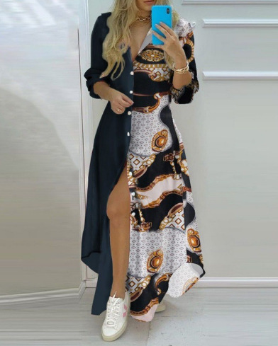 Главная страница > AliExpress 2021, горячая модель Amazon, европейская и американская весенне-летняя модная сексуальная рубашка, длинная юбка, платье для женщин
