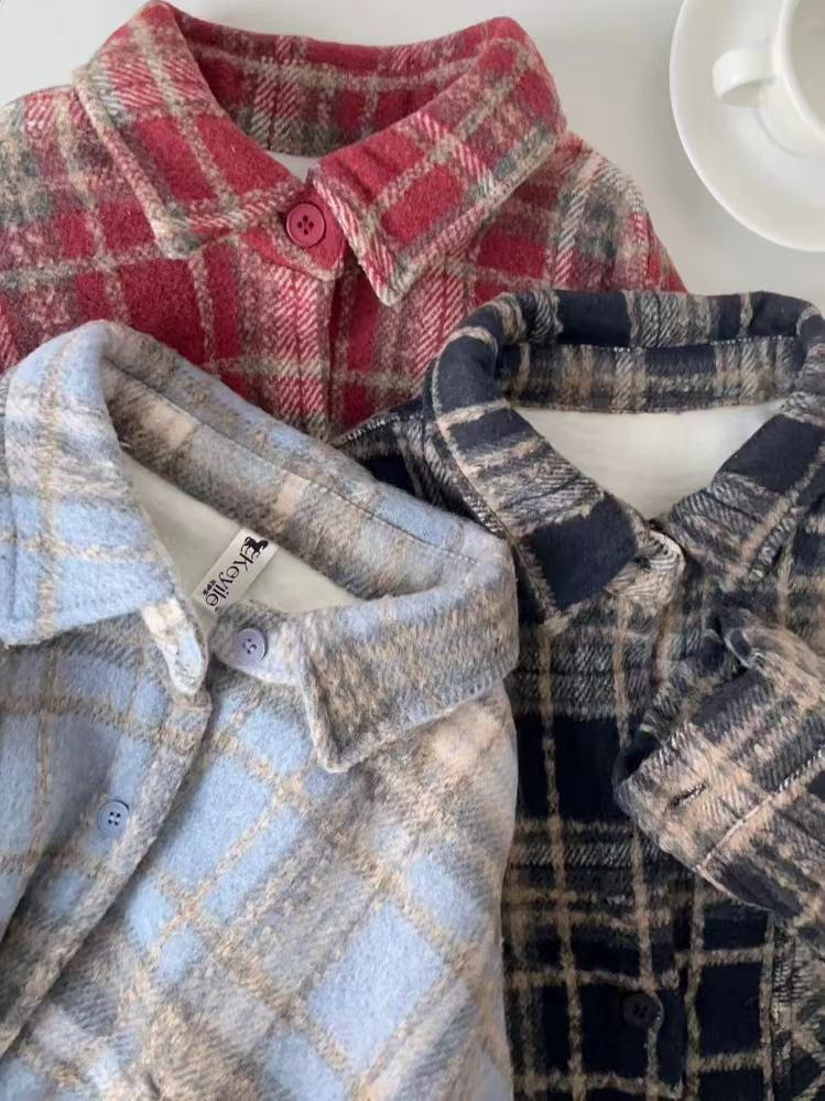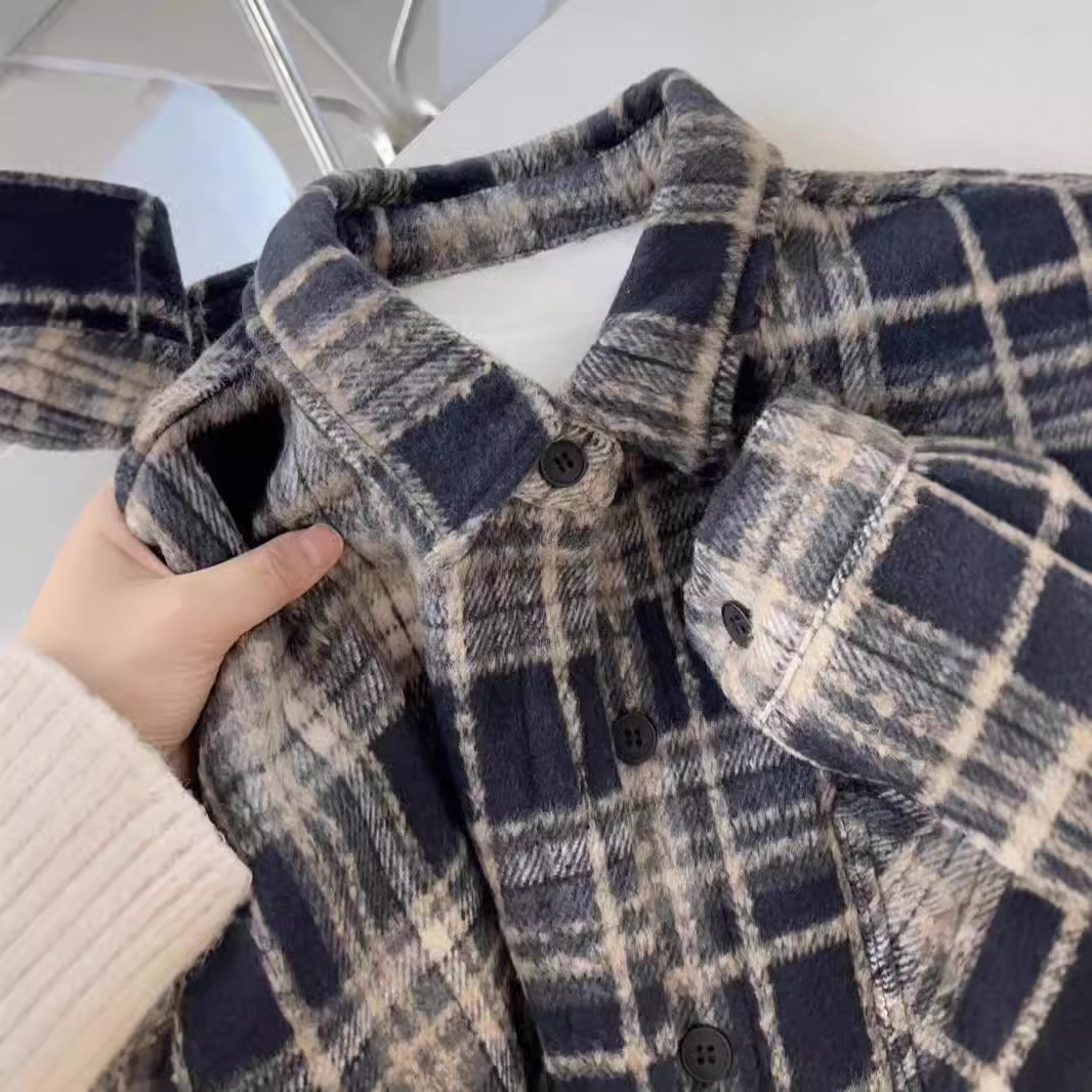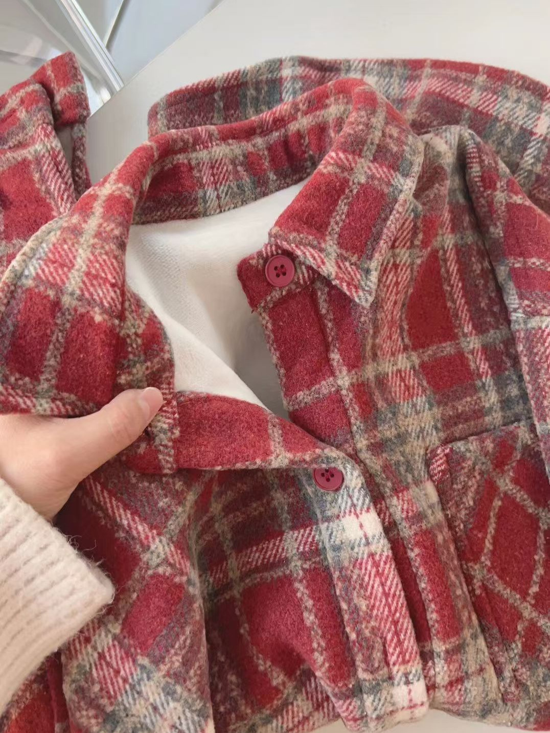 Главная страница > Ретро повседневная рубашка женская осень-зима новый винно-красный терракот в клетку утолщенные теплые рубашки пальто для мужчин и женщин