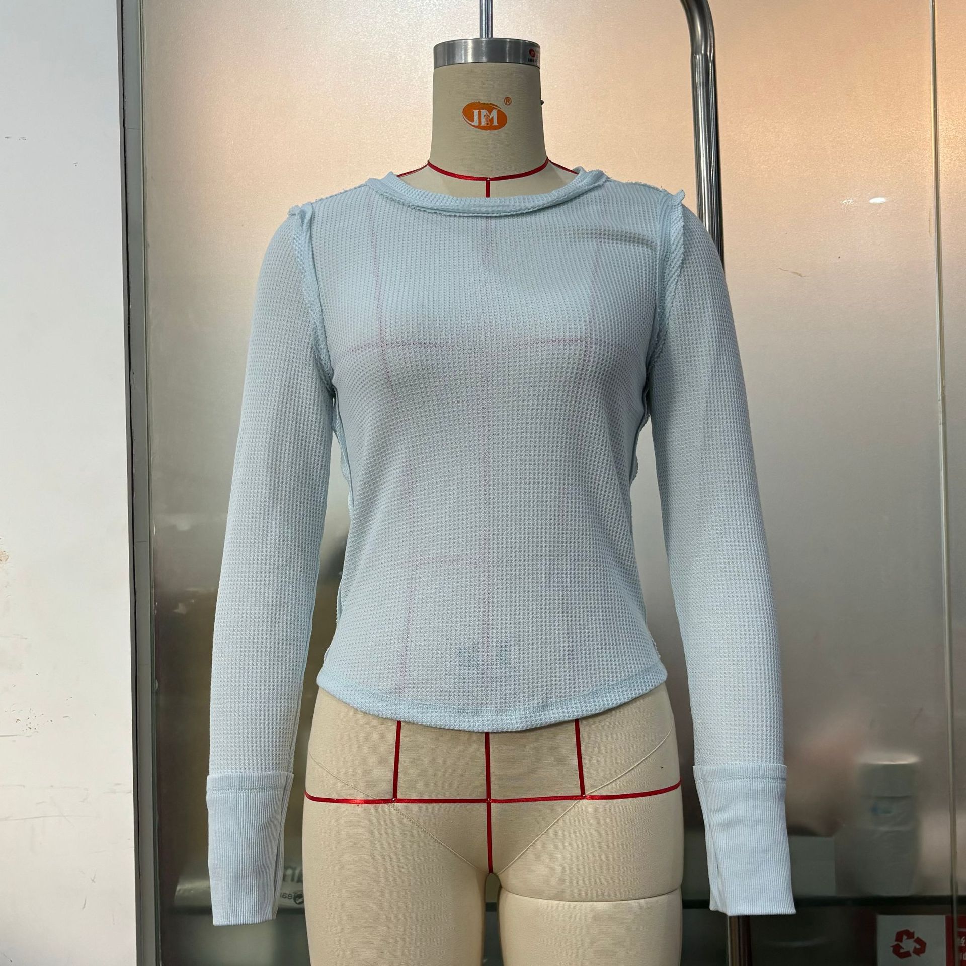 Новинка: женская повседневная футболка с длинным рукавом в европейском и американском стиле, осенне-зимняя, однотонная, приталенная, базовая модель, топ, хит продаж SU3532