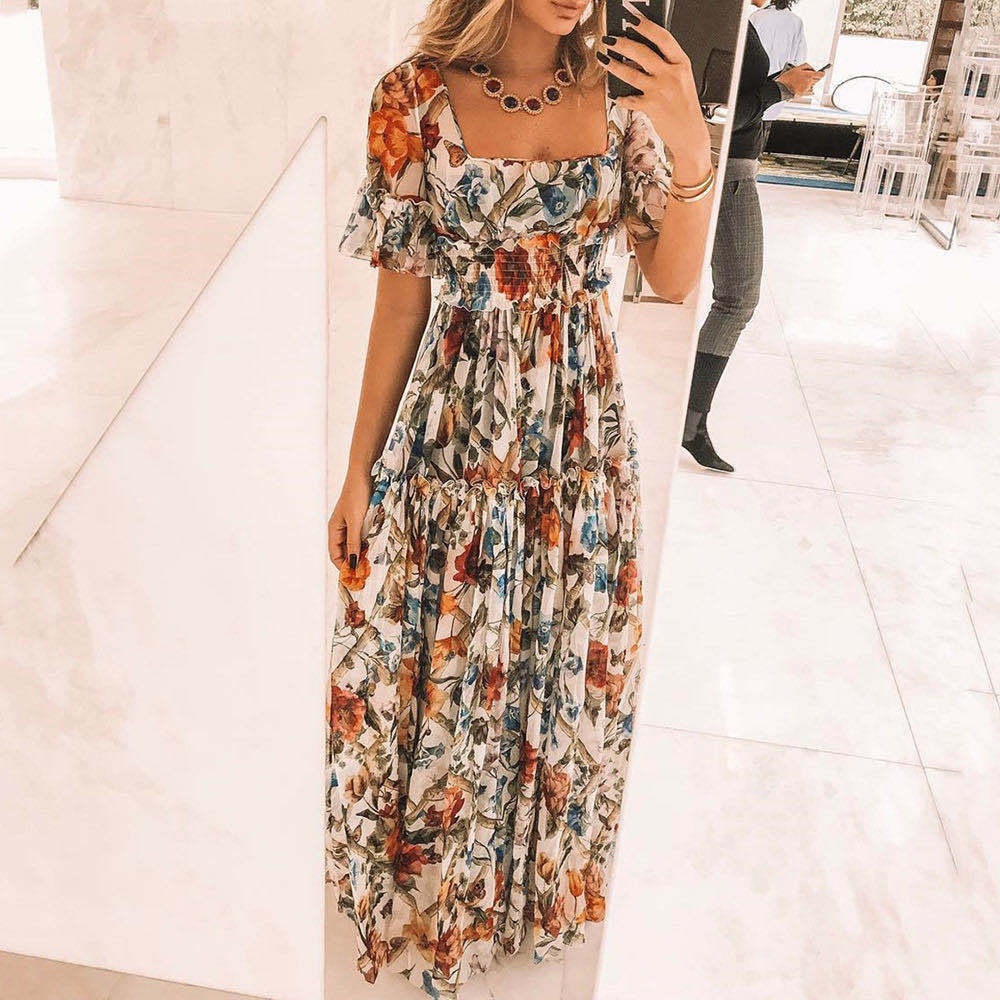 Главная страница > Трансграничное европейское и американское платье с высокой талией с квадратным вырезом с принтом рукава из листьев лотоса