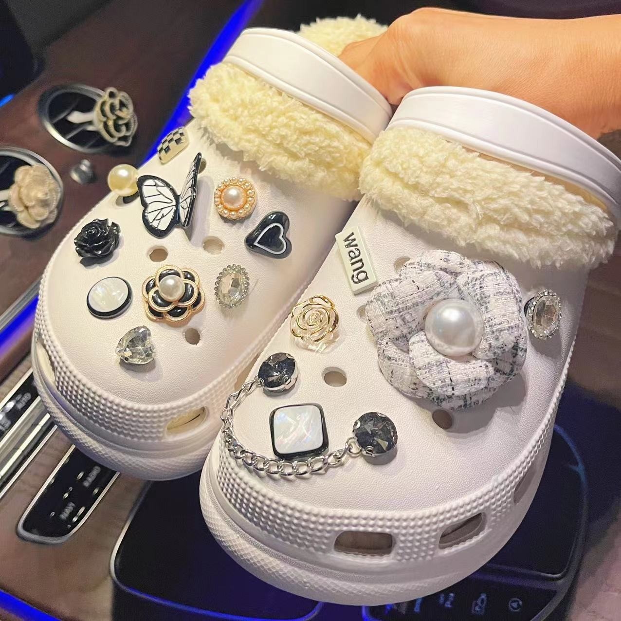 Главная страница > Мультфильм милые отверстия Аксессуары для обуви DIY Пряжка для обуви декоративные аксессуары с пряжкой аксессуары для тапочек цветок обуви кролик вспышка бриллиантовое украшение