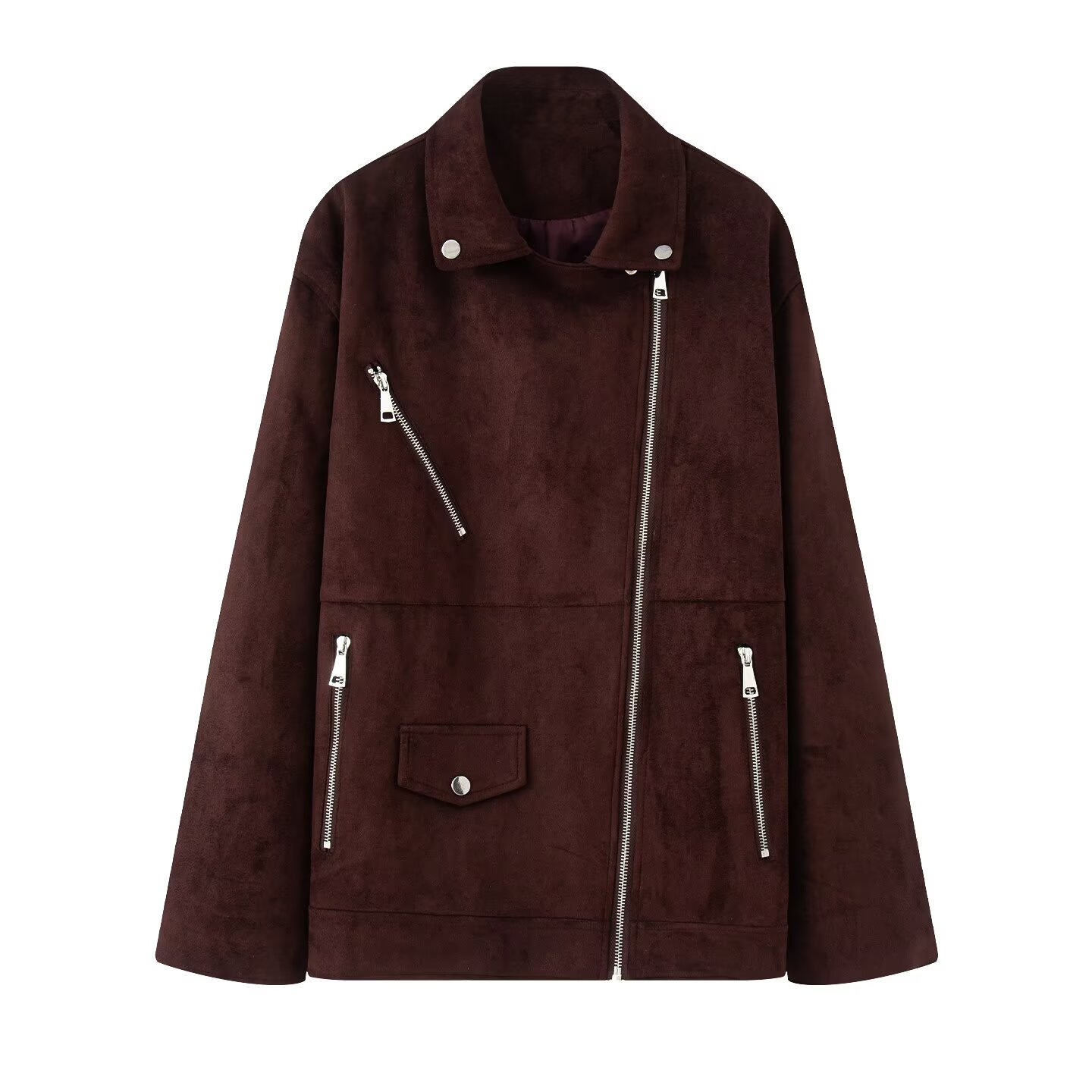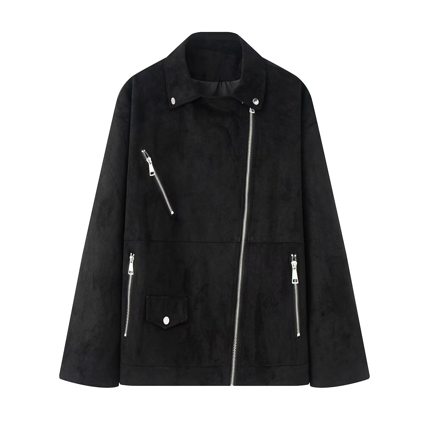 ZA速卖通爆款跨境外贸欧美风女装绒面质感效果机车款翻领夹克外套