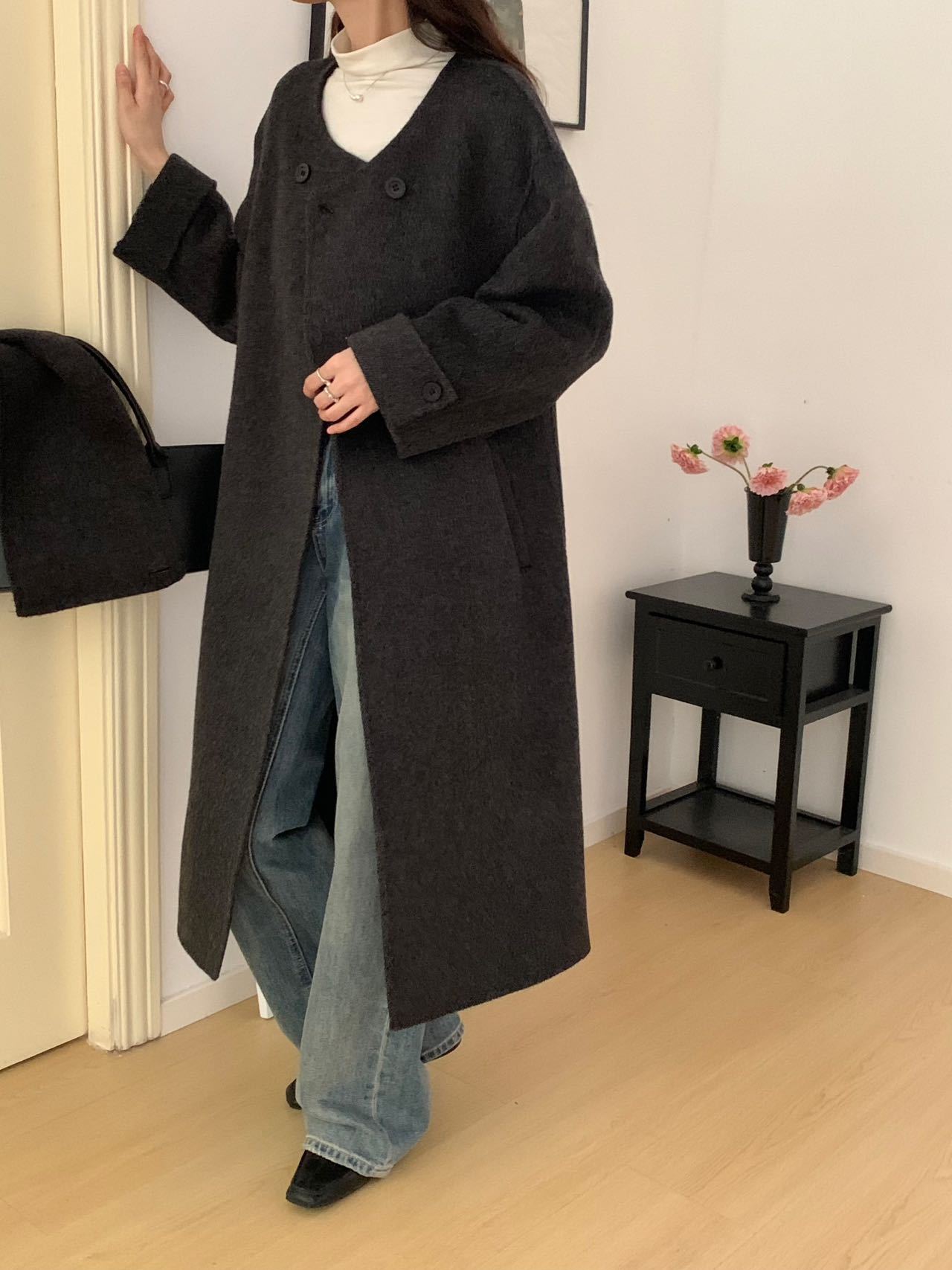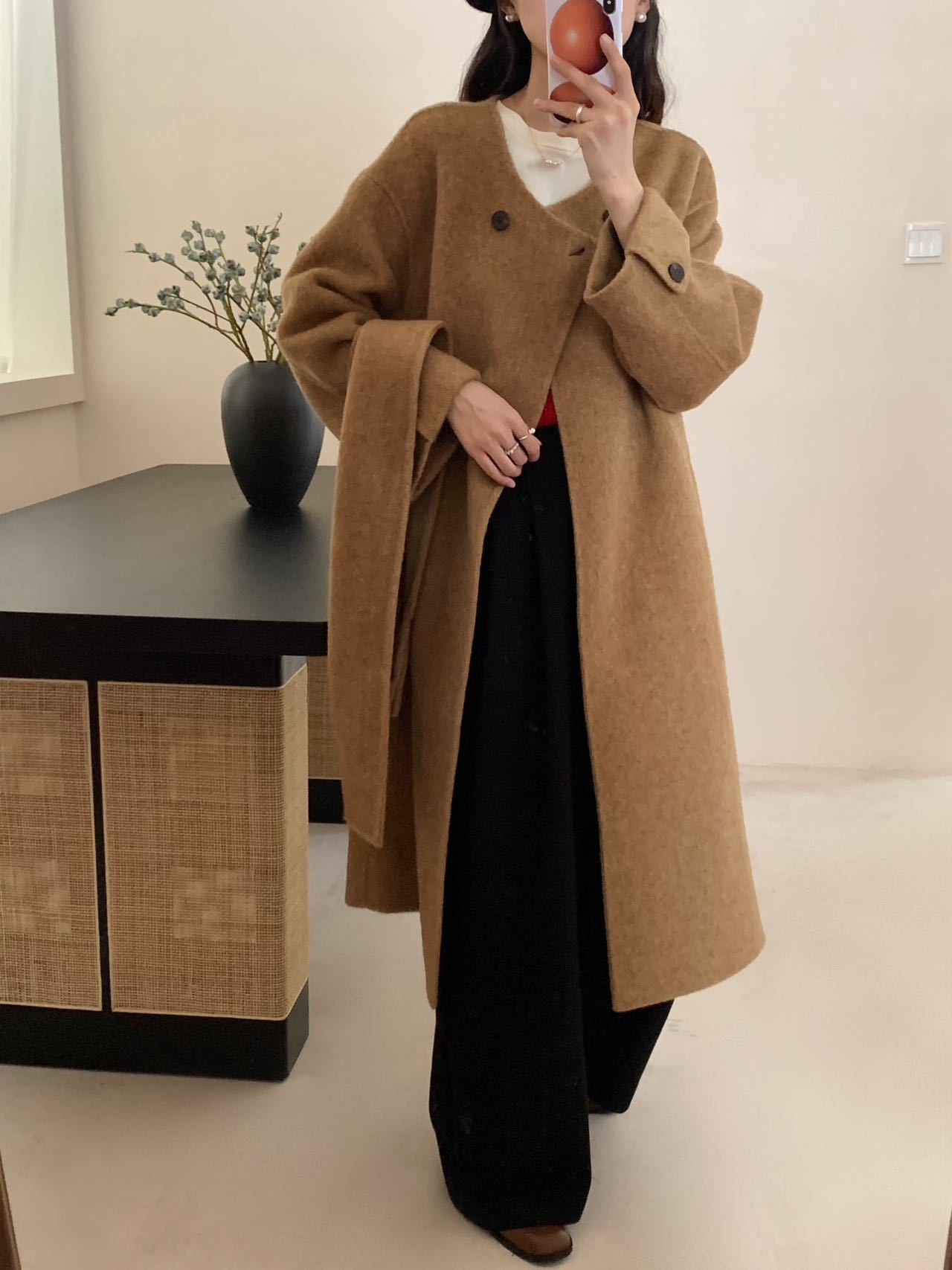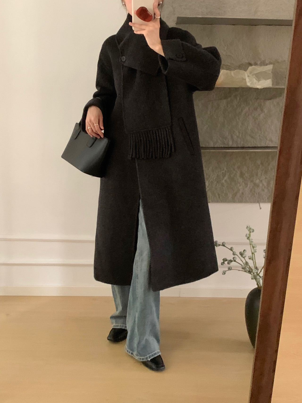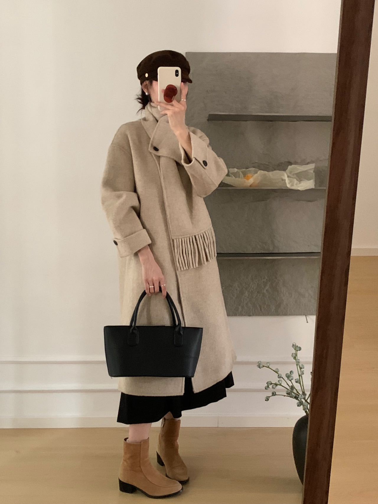 Главная страница > Корейский съемный шарф воротник 2024 новый двухсторонний шерстяной пальто женский колено досуг простой стиль шерстяной куртки