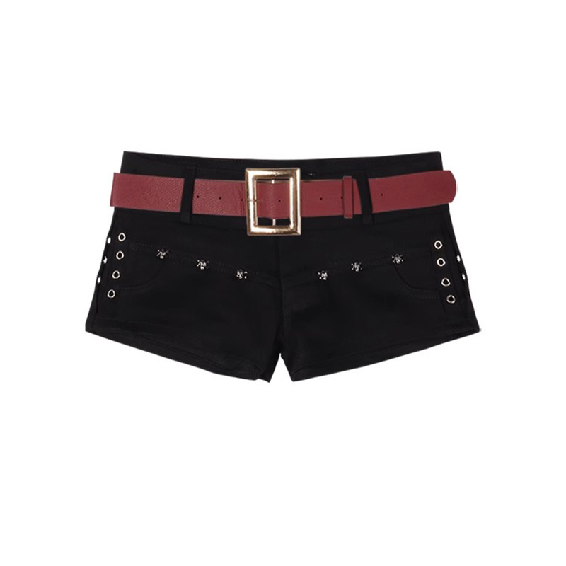 Главная страница > Американские сексуальные белые джинсовые супершорты с низкой талией y2k для женщин с заклепками, утягивающие шорты трапециевидной формы, облегающие бедра