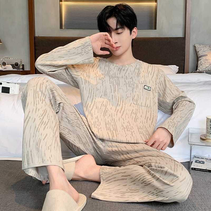 Главная страница > Новый весенний и осенний мужской набор с длинными рукавами пижамы из хлопка повседневный большой размер дышащая домашняя одежда осень-зима