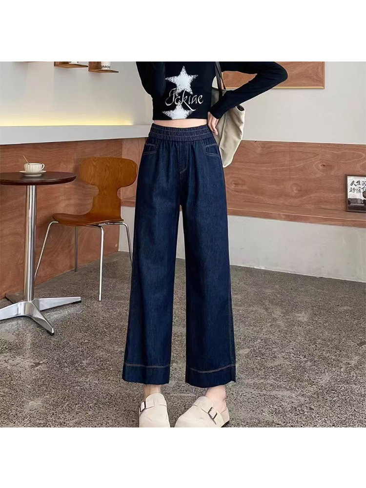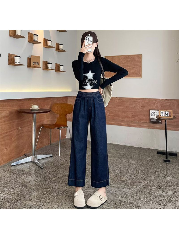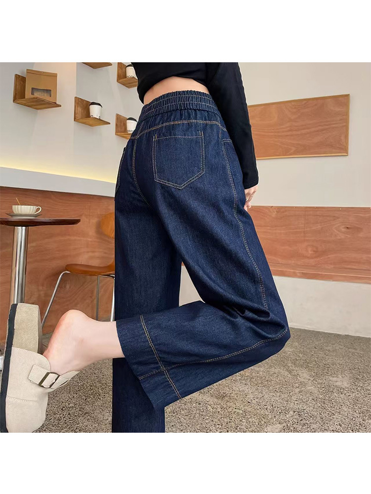 Главная страница > Прямые джинсы с высокой талией женские весенние и летние новые модные эластические талии свободные тонкие широкие брюки