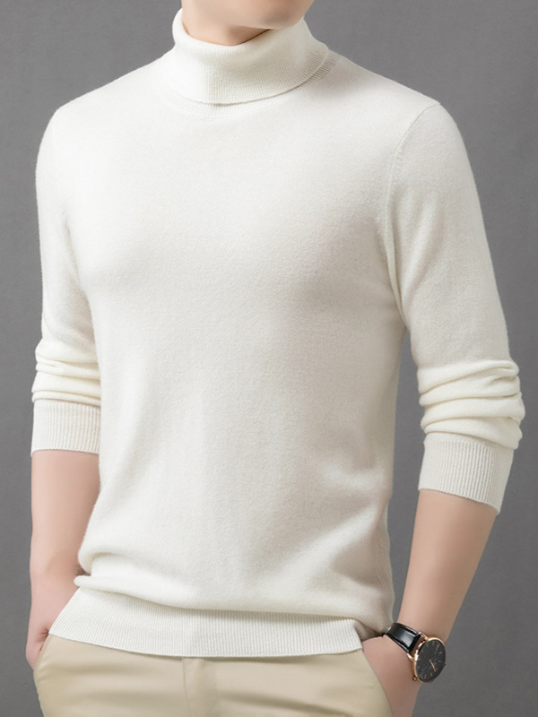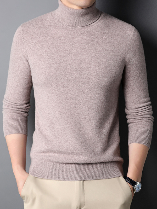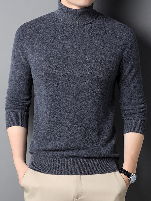 Главная страница > Мужской свитер из 100% шерсти, 2025, деловой повседневный, свободного кроя, вязаный, с высоким воротом, однотонный, базовая рубашка, немнущийся, с длинным рукавом