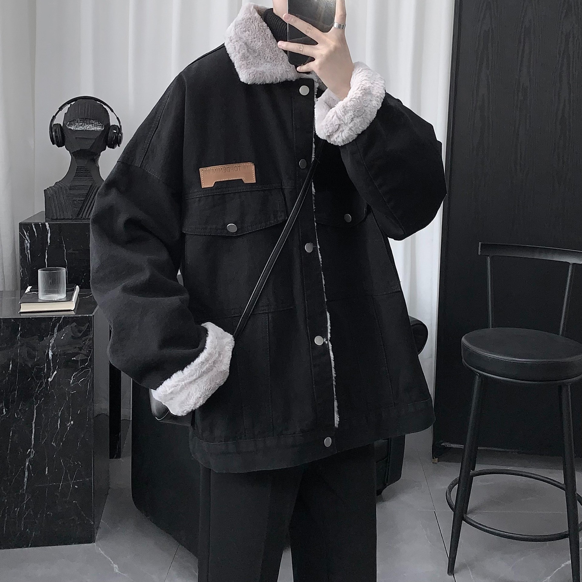 Главная страница > Зимняя кашемировая джинсовая куртка с лацканами мужская приливная бренд повседневная японская ретро американская высокая улица свободная бархатная куртка