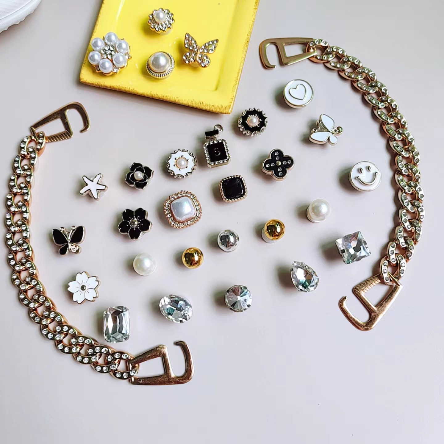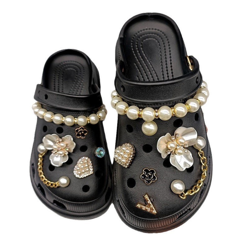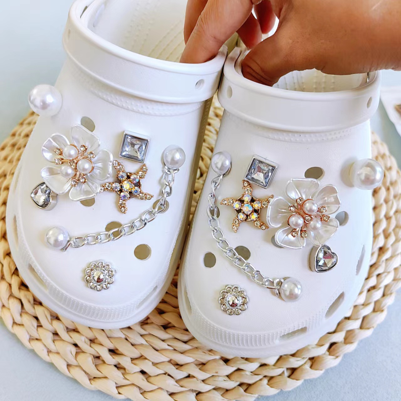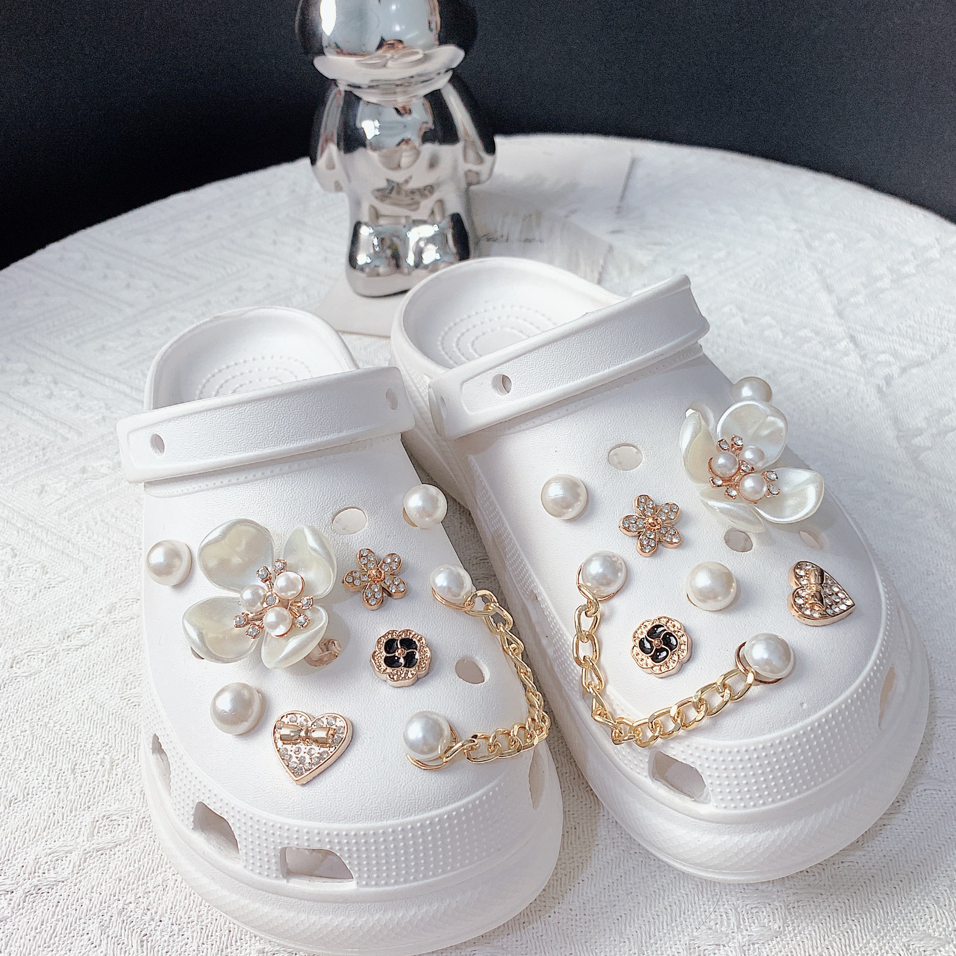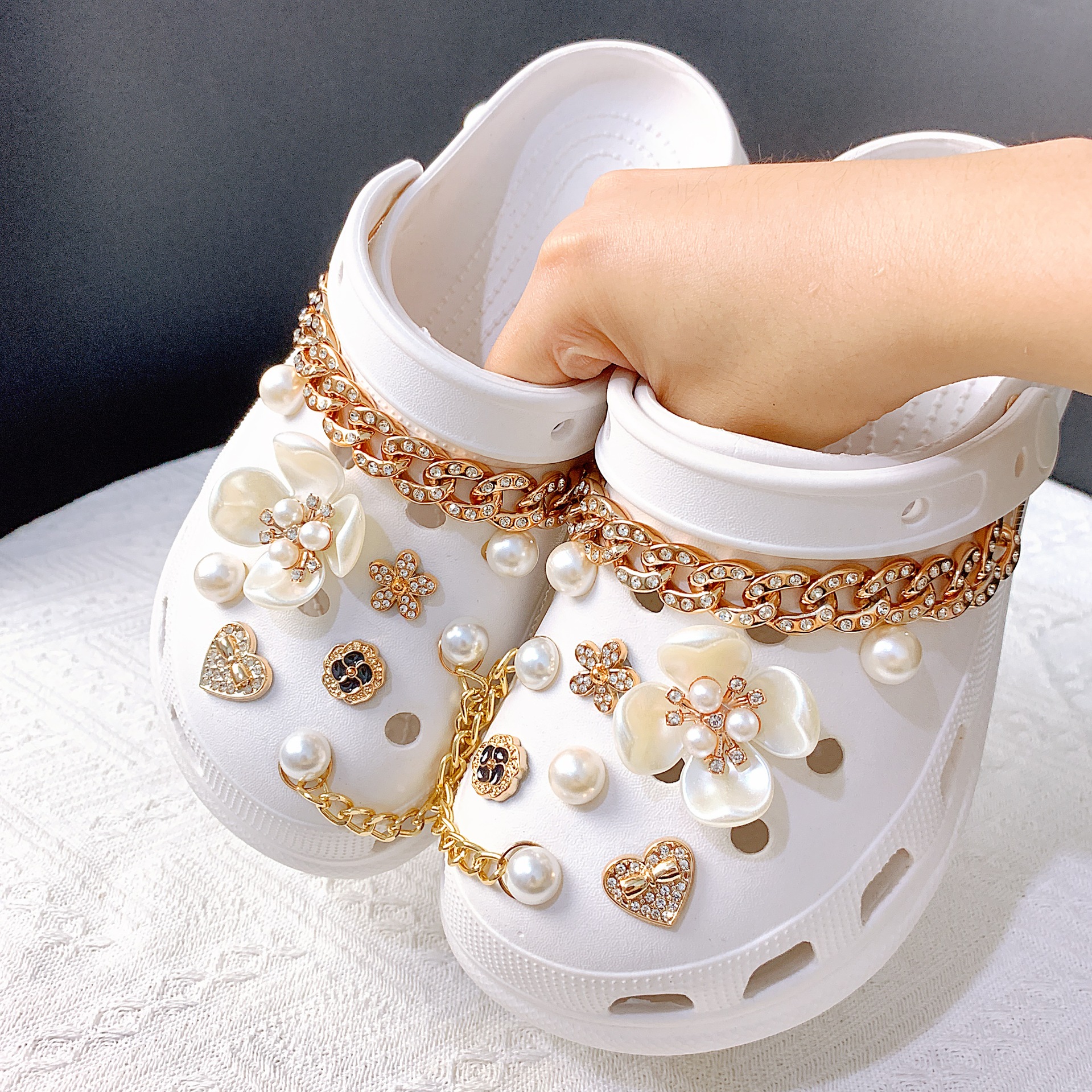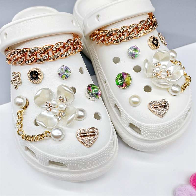 Главная страница > Трансграничные новые аксессуары для обуви с отверстиями DIY Пряжка для обуви жемчужная металлическая цепочка со стразами костюм цветок обуви декоративная пряжка