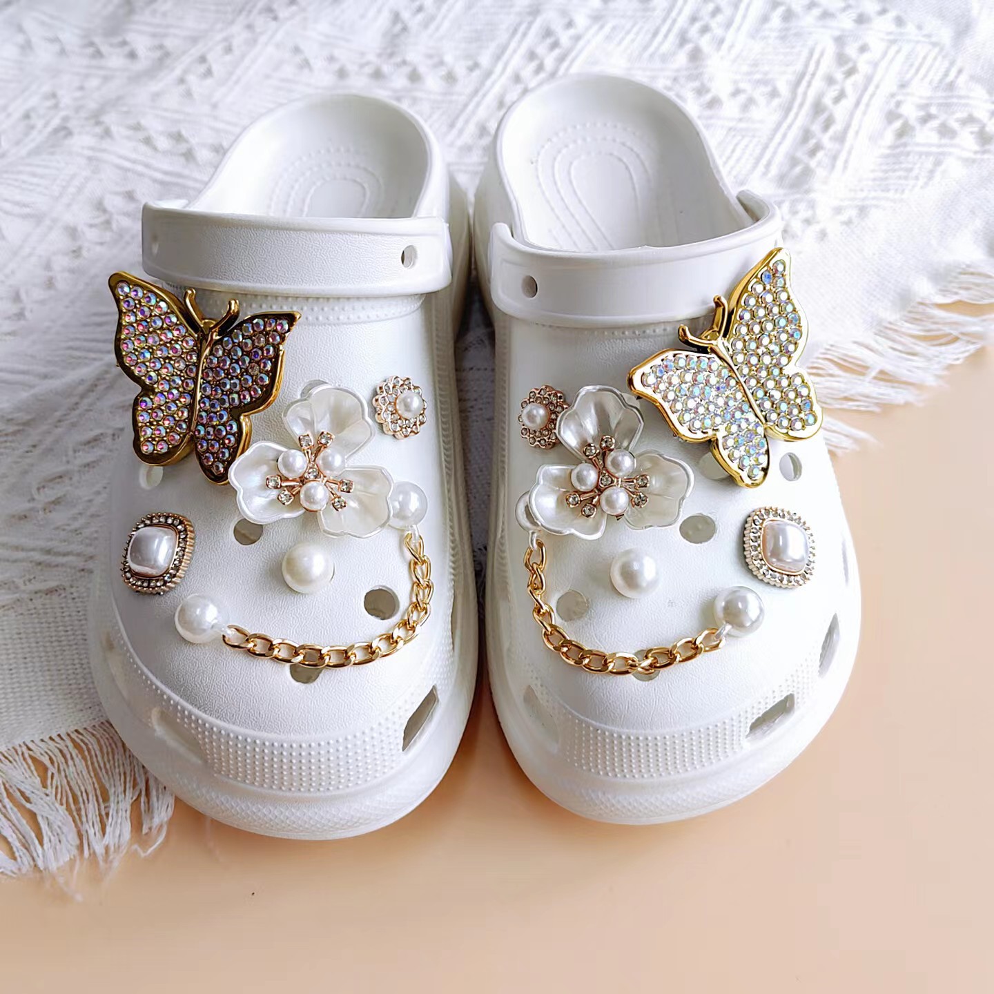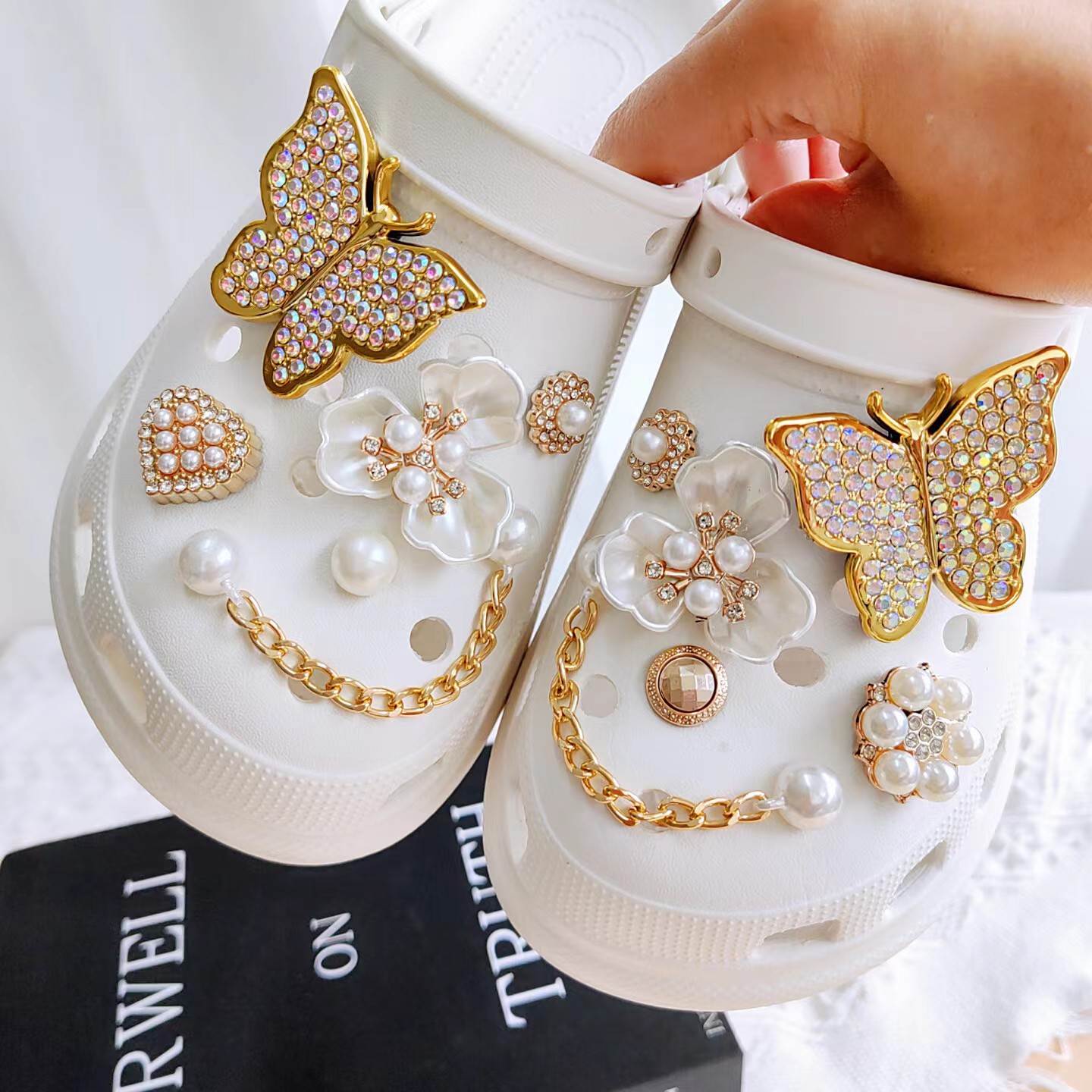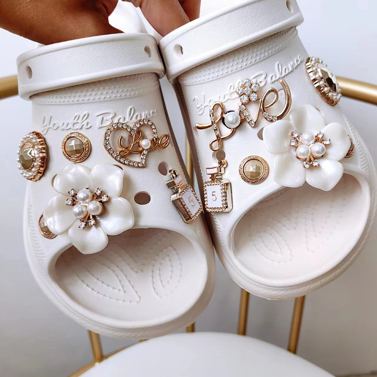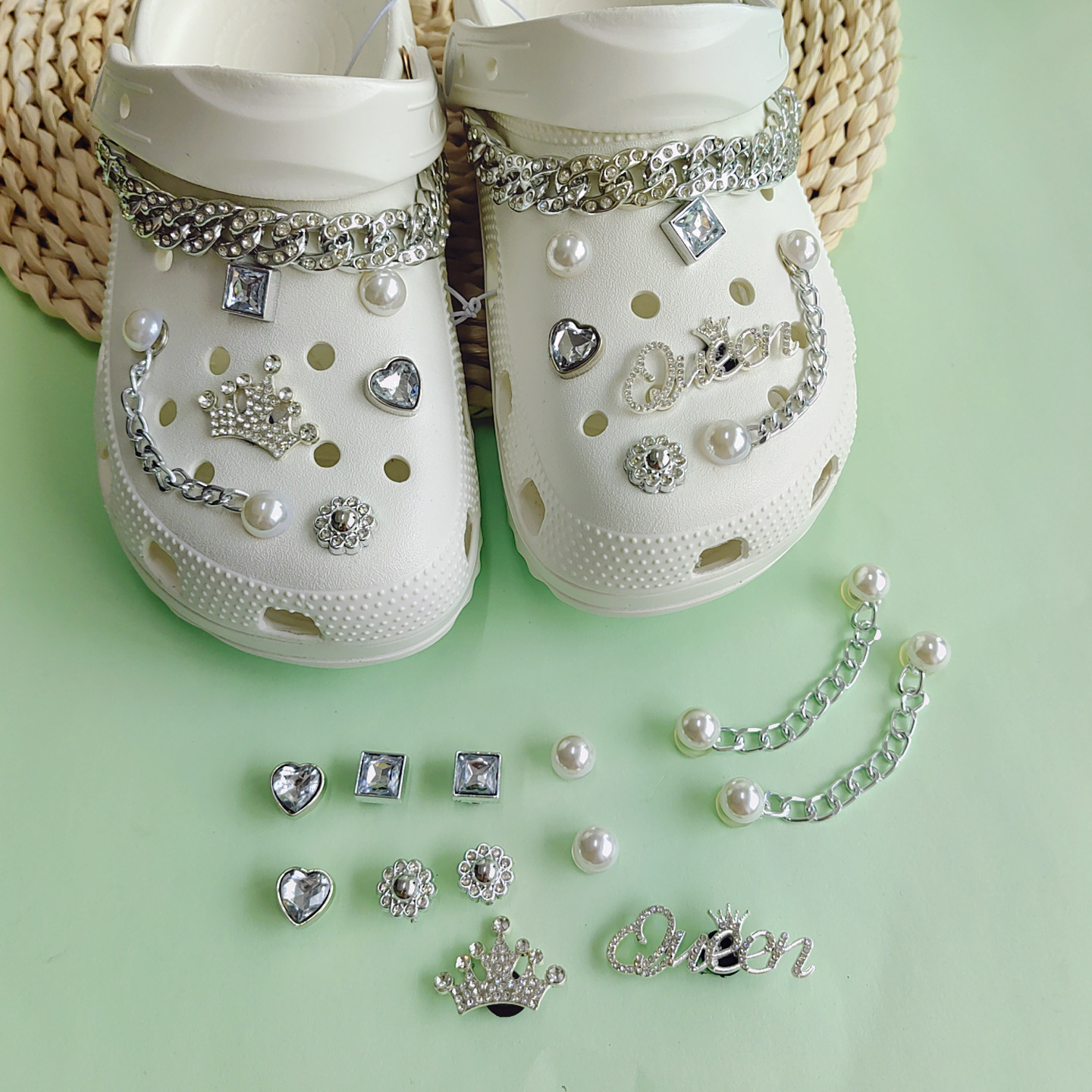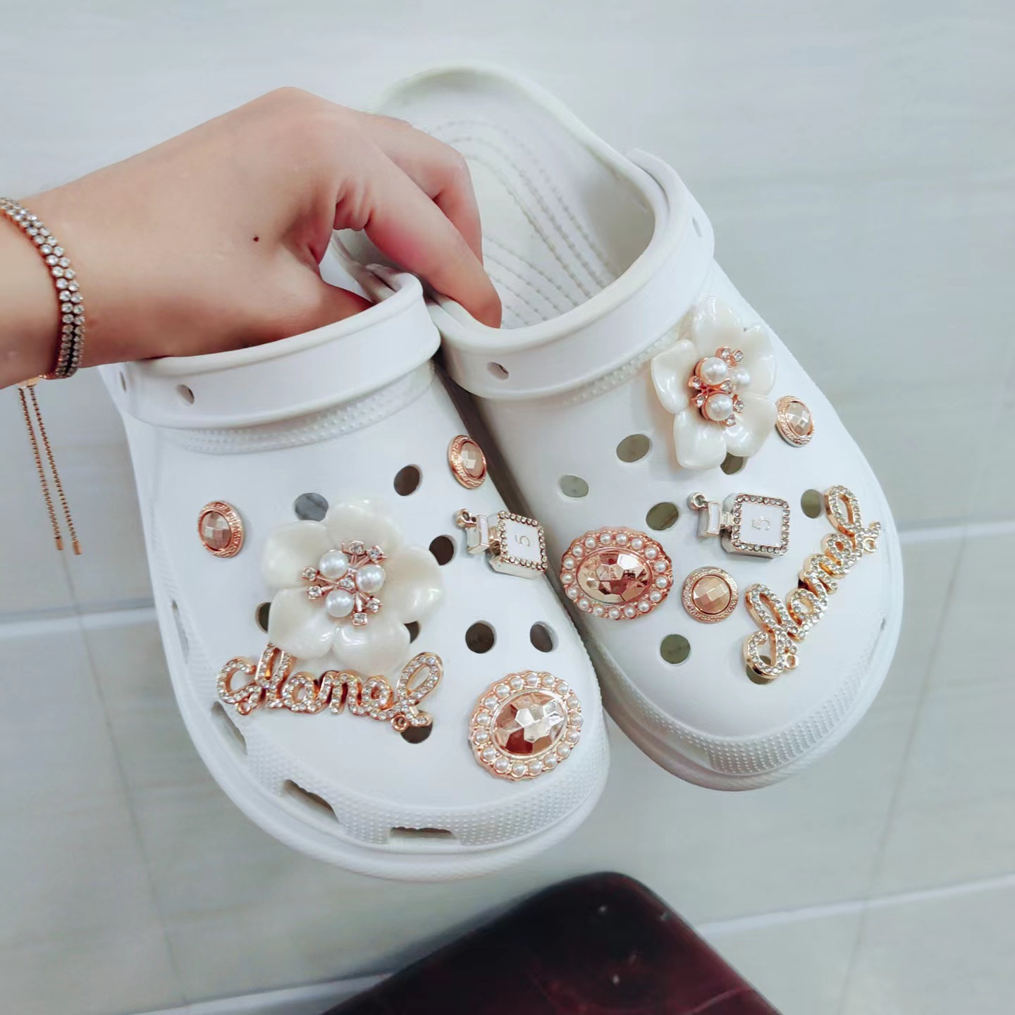 Главная страница > Трансграничные новые аксессуары для обуви с отверстиями DIY Пряжка для обуви жемчужная металлическая цепочка со стразами костюм цветок обуви декоративная пряжка