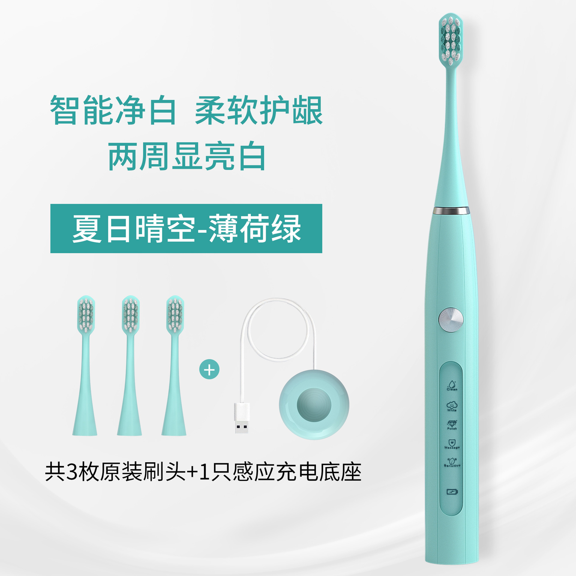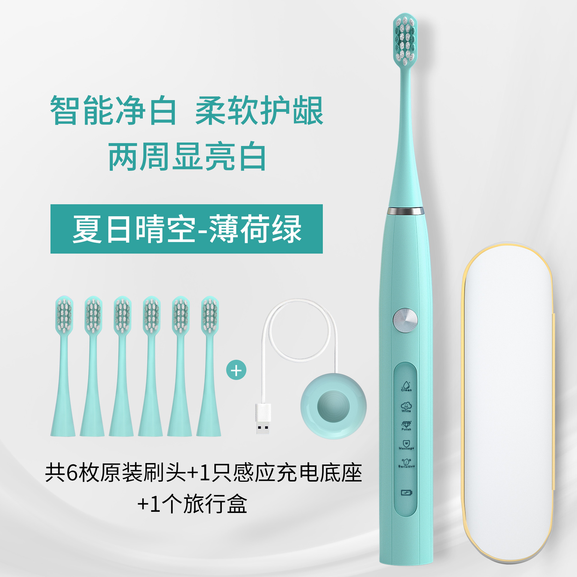 DY-620 Обновленная версия — мятно-зеленый (основной блок + 3 оригинальные насадки-щетки + сенсорная база)