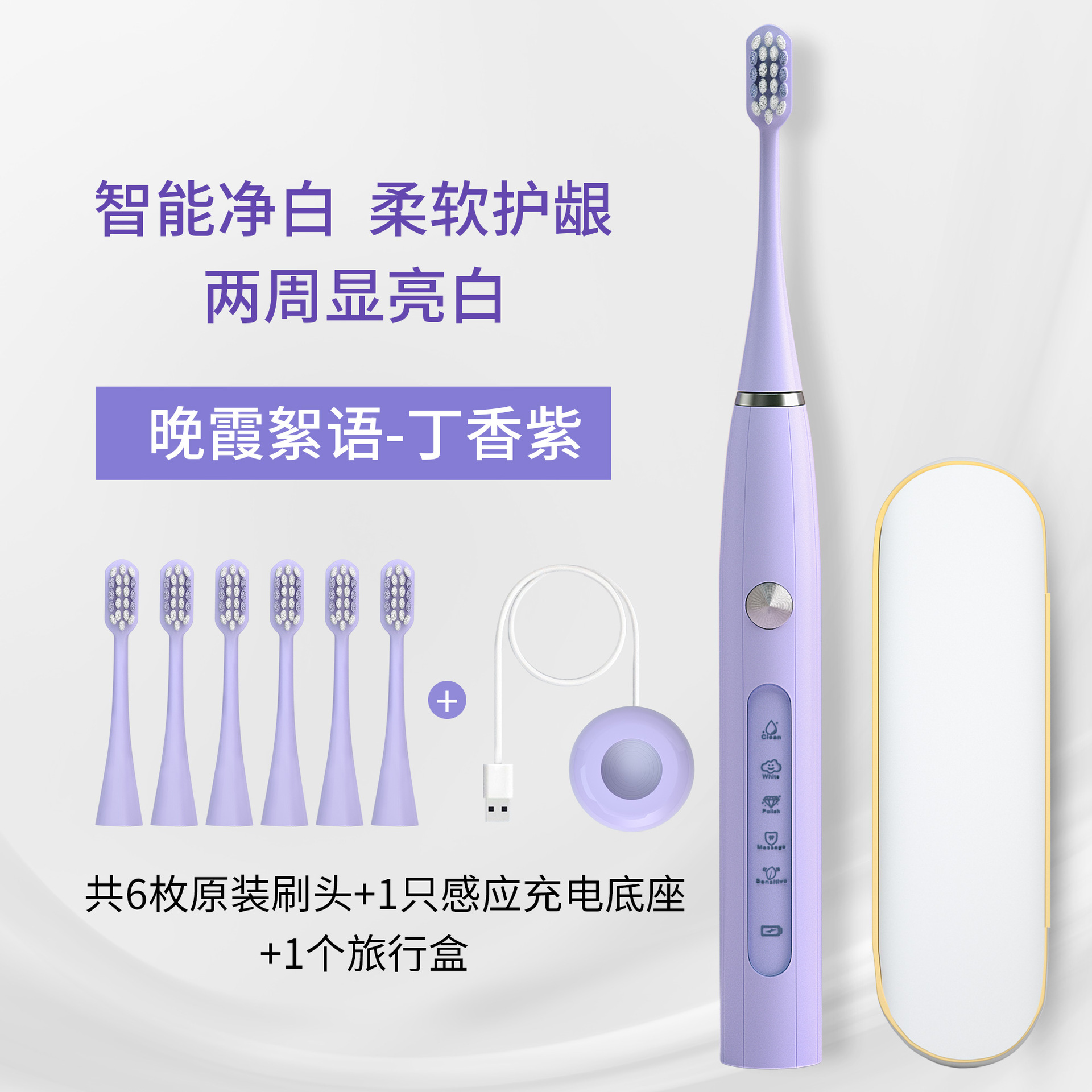 620 индукционная щетка с 6 насадками (фиолетовая) + портативный футляр