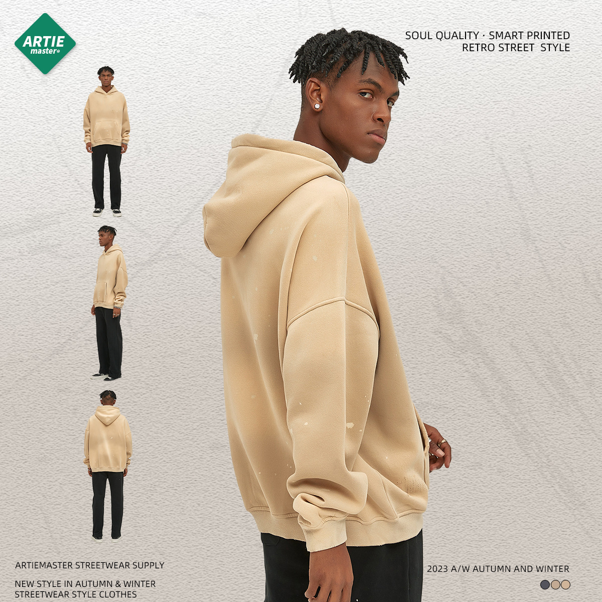 ARTIE мужская одежда | Мужской свитшот винтажного стиля с эффектом потертости и рваными краями, распылённая краска 360 г, новинка осень-зима 2025, трендовый бренд