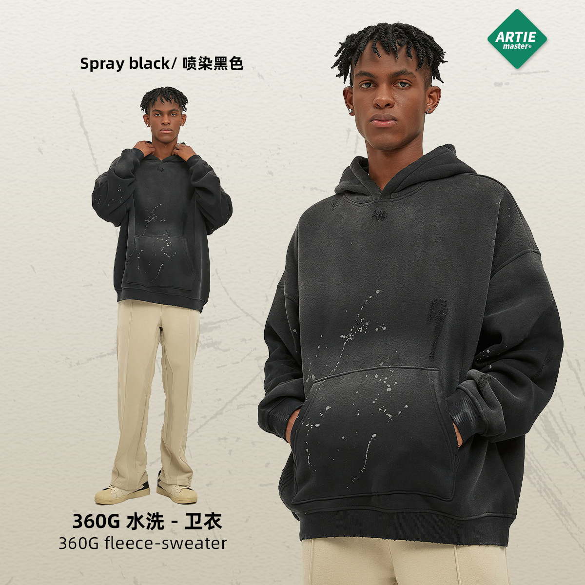 Главная страница > ARTIE мужская одежда | Мужской свитшот винтажного стиля с эффектом потертости и рваными краями, распылённая краска 360 г, новинка осень-зима 2025, трендовый бренд