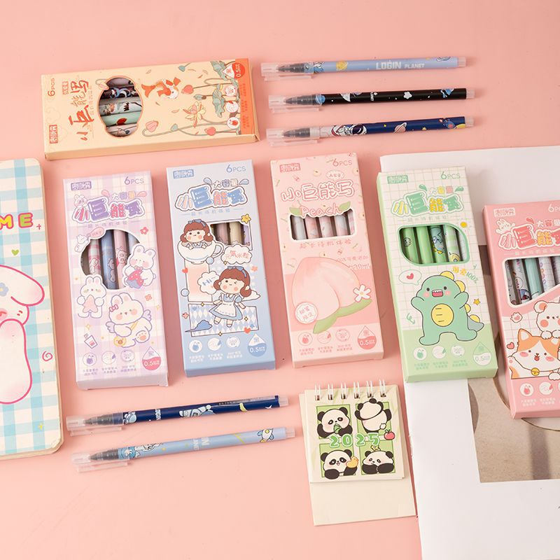 В штучной упаковке милый мультфильм прямой литейная ручка для студентов с высоким значением лица ins Быстрая сушка шариковая ручка экзамен черная ручка 0.5