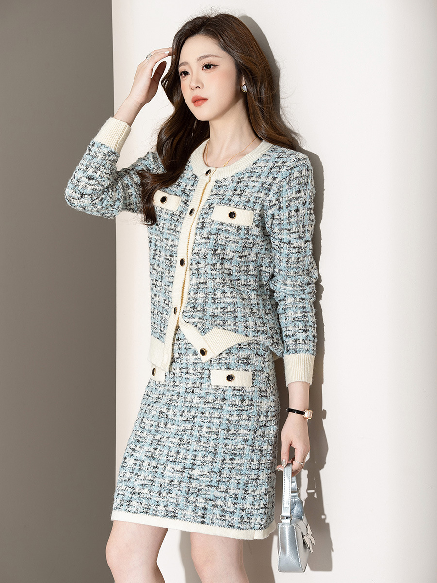 Главная страница > 2024 осень и зима новый французский маленький ароматный ветер высокого уровня трикотажный кардиган бюст юбка набор из двух частей женский модный набор прилив